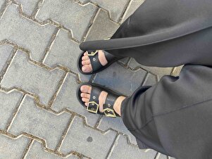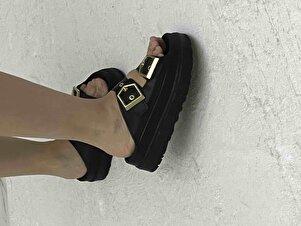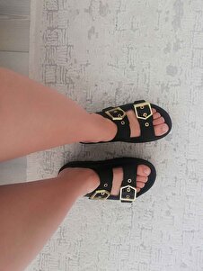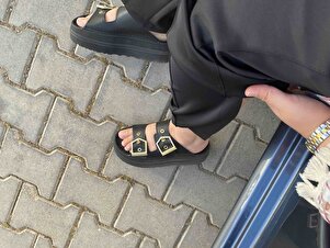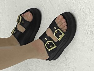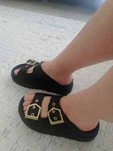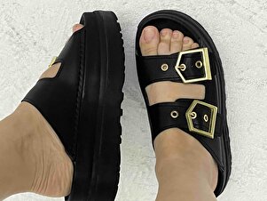 Kadın Siyah Yüksek Poli Taban Çift Bantlı Tokalı Terlik Kadın Siyah Yüksek Poli Taban Çift Bantlı Tokalı Terlik TBGZGN010 40