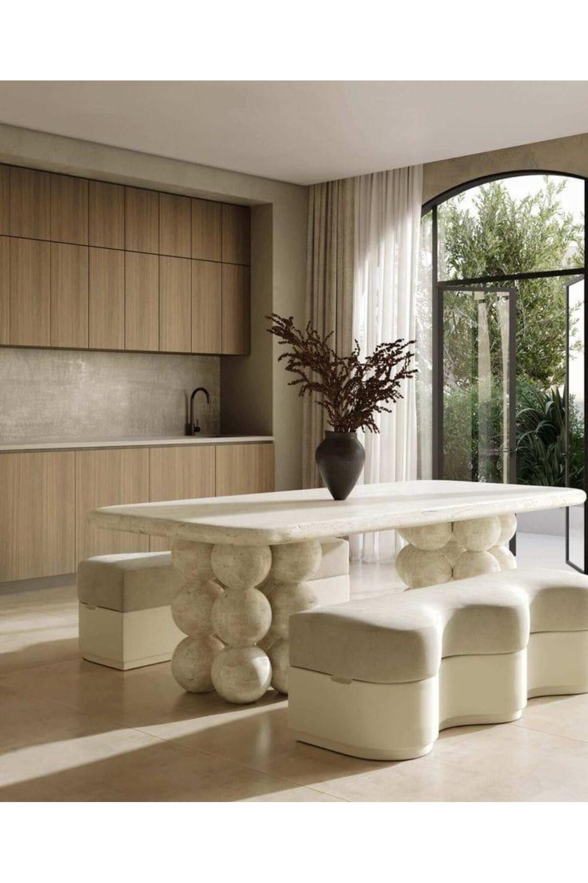 Patlatma - Traverten Yemek Masası Patlatma - Traverten Yemek Masası ART-628 تک سایز