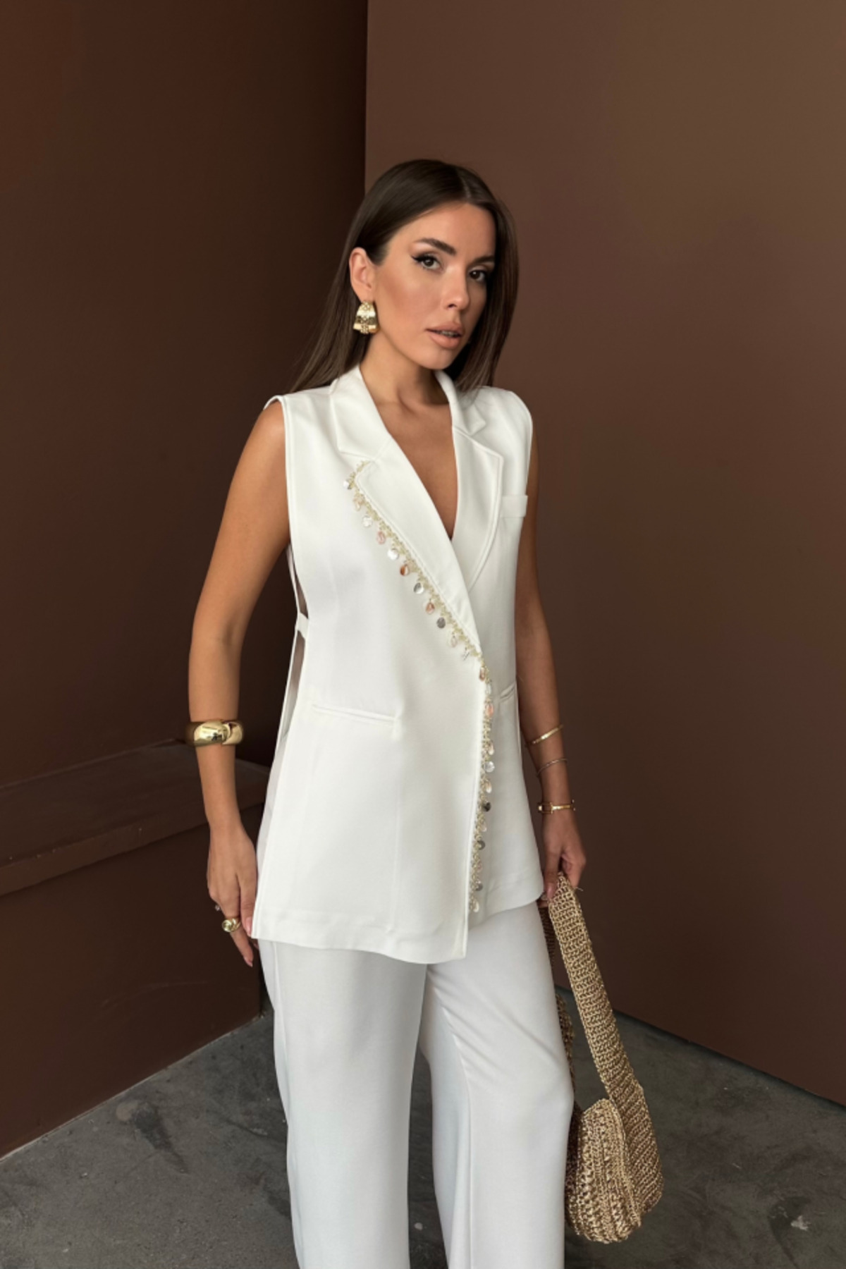 YAKA MİDYE KABUĞU SIRALI YELEK - PANTOLON TAKIM KETEN KUMAŞ - Beyaz YAKA MİDYE KABUĞU SIRALI YELEK - PANTOLON TAKIM KETEN KUMAŞ - Beyaz KH-c52fe5fe L