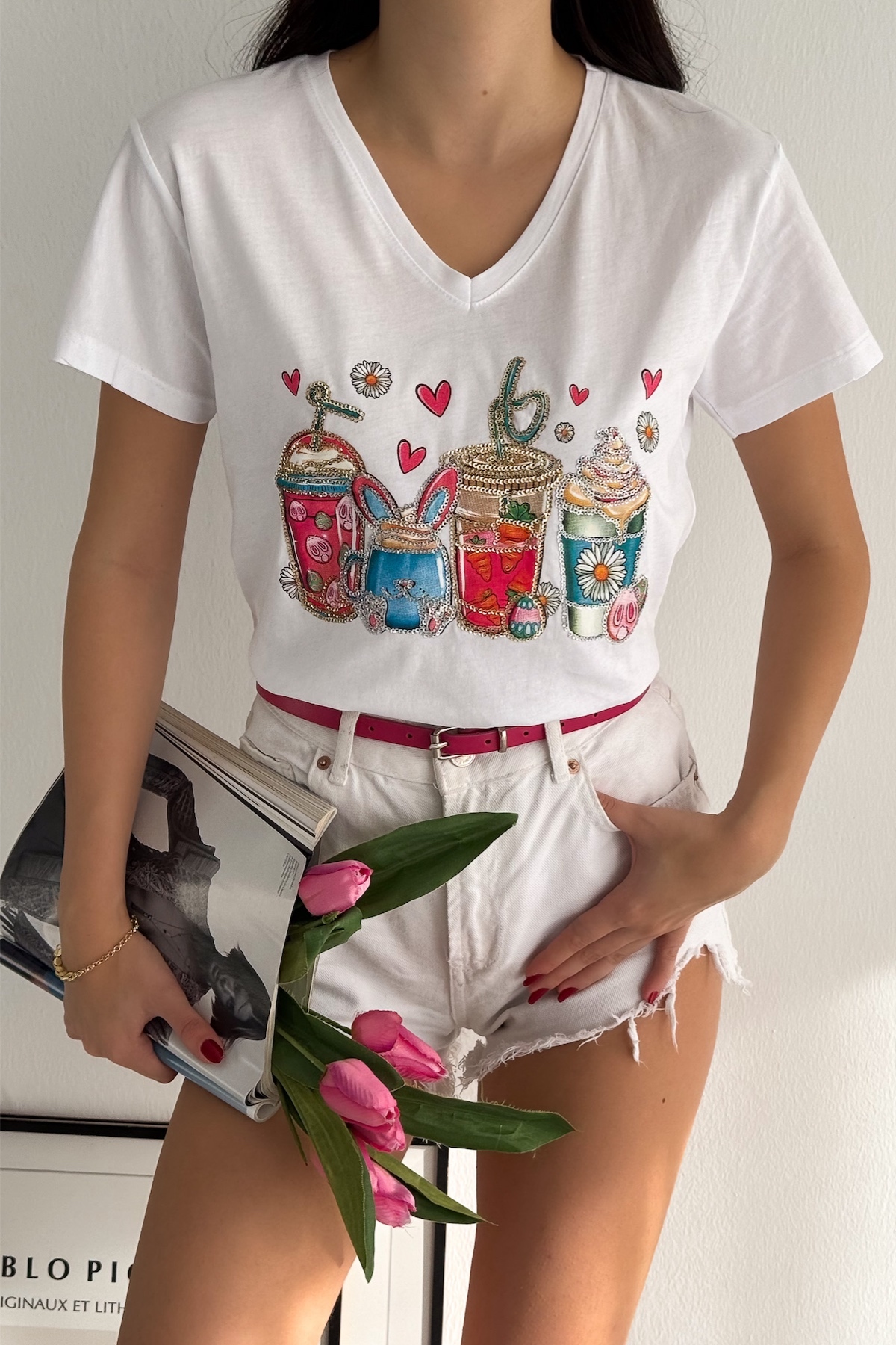 Kadın Siyah V Yaka Mavi Papağan Pul Payet İşlemeli %100 Pamuk Tişört Kadın Siyah V Yaka Mavi Papağan Pul Payet İşlemeli %100 Pamuk Tişört FEM53 L