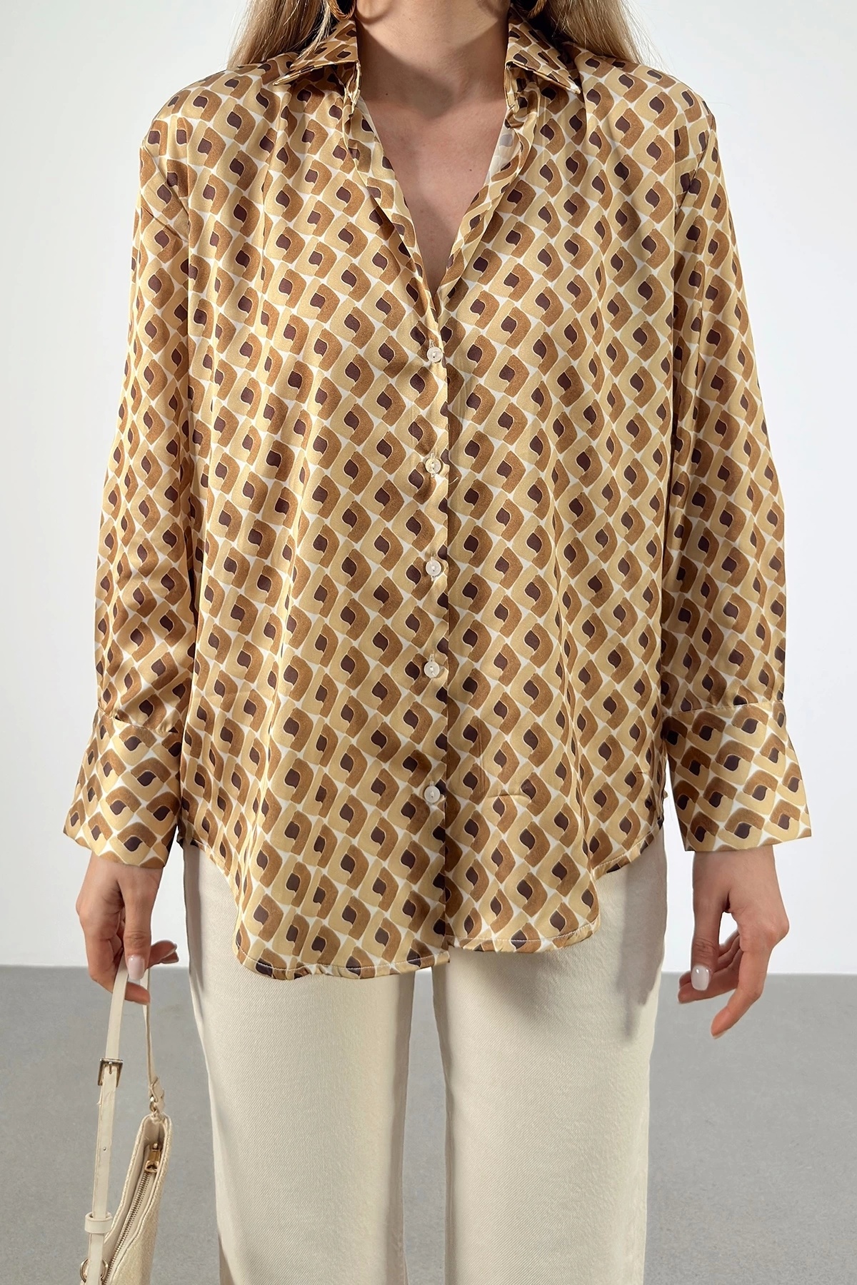 Geometrik Desenli Saten Gömlek Bej Geometrik Desenli Saten Gömlek Bej P1713S7546 L