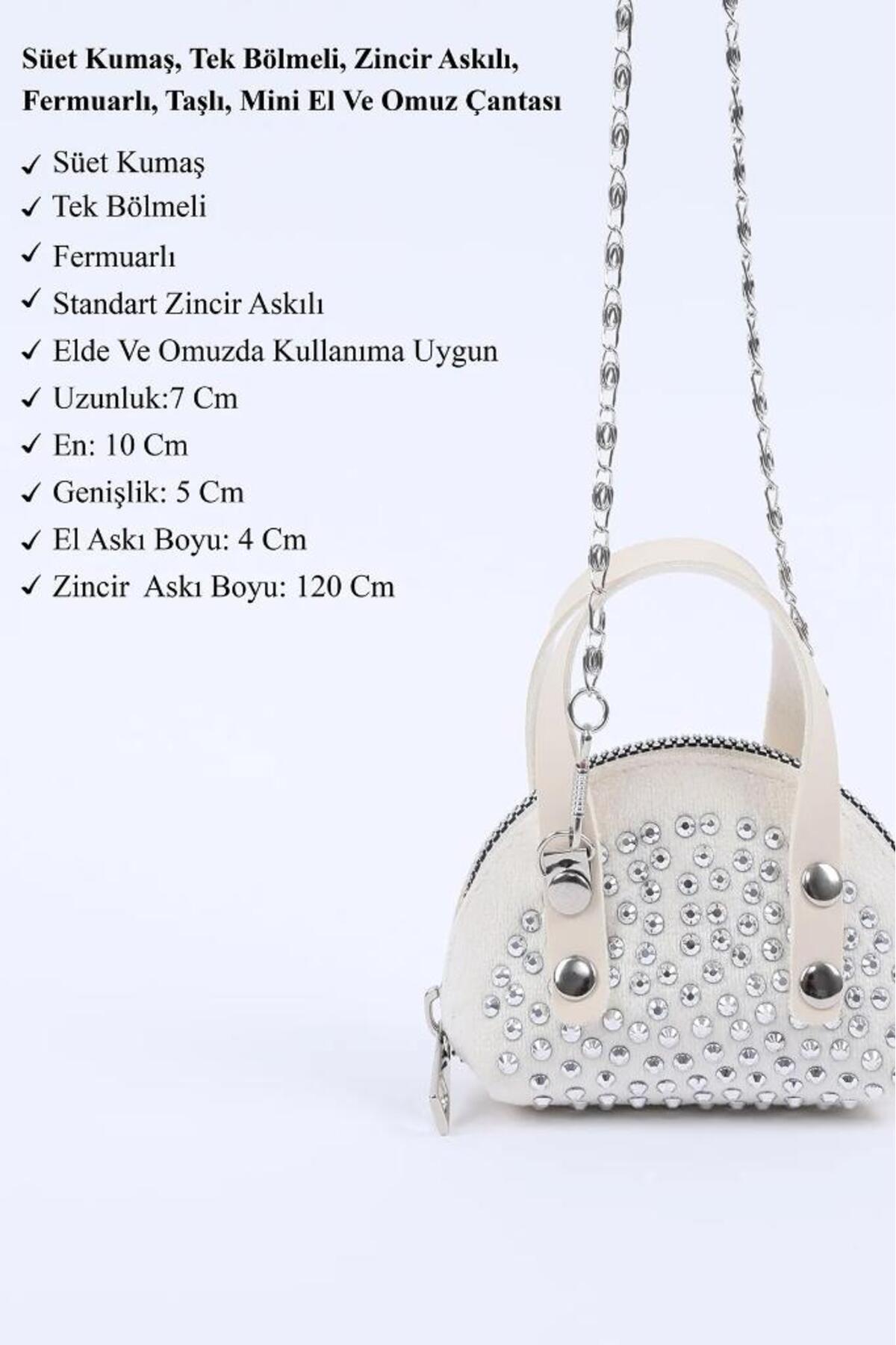 Krem Süet Kumaş, Tek Bölmeli, Zincir Askılı,Fermuarlı, Taşlı, Mini El Ve Omuz Çantası 10 cm Krem Süet Kumaş, Tek Bölmeli, Zincir Askılı,Fermuarlı, Taşlı, Mini El Ve Omuz Çantası 10 cm taşlımini تک سایز