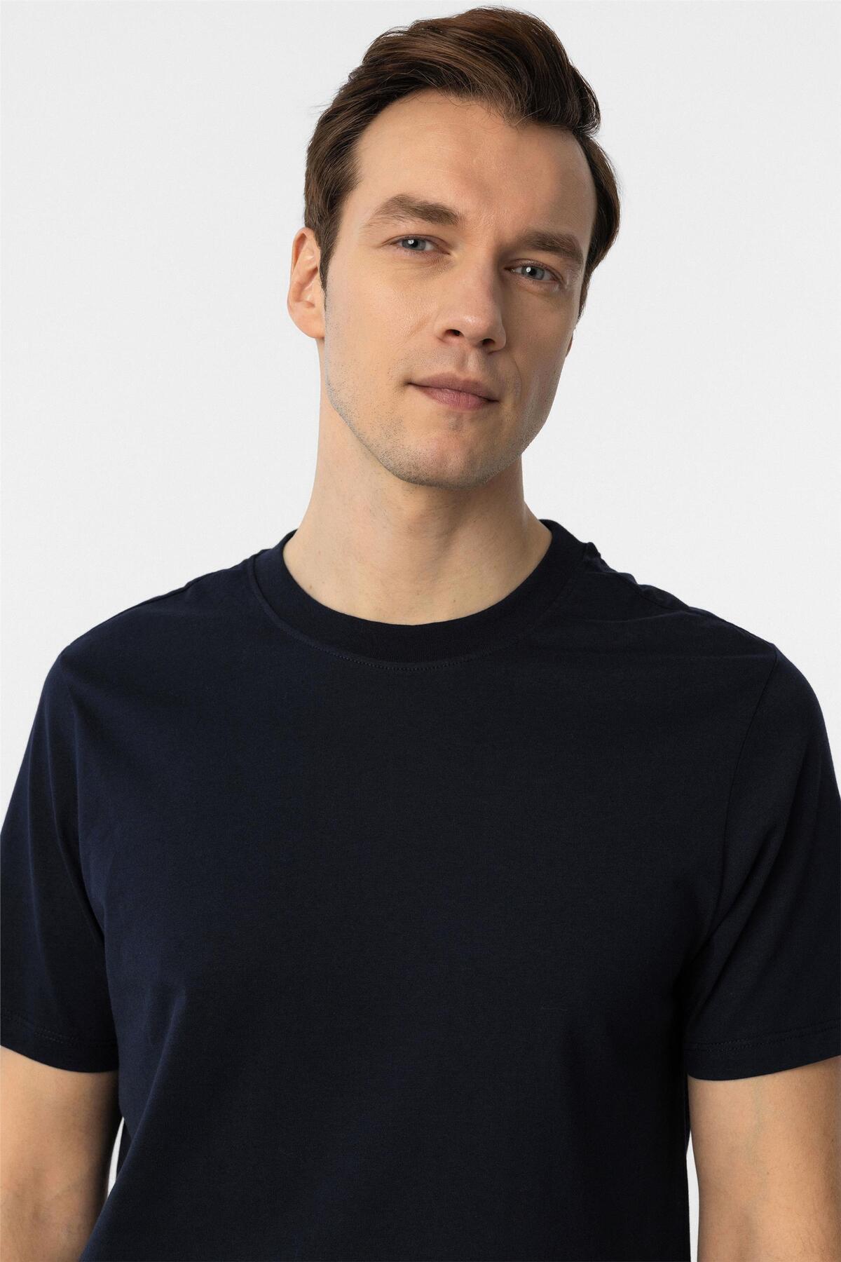 Lacivert Regular Düz Bisiklet Yaka Tişört Lacivert Regular Düz Bisiklet Yaka Tişört TS1014000406 L