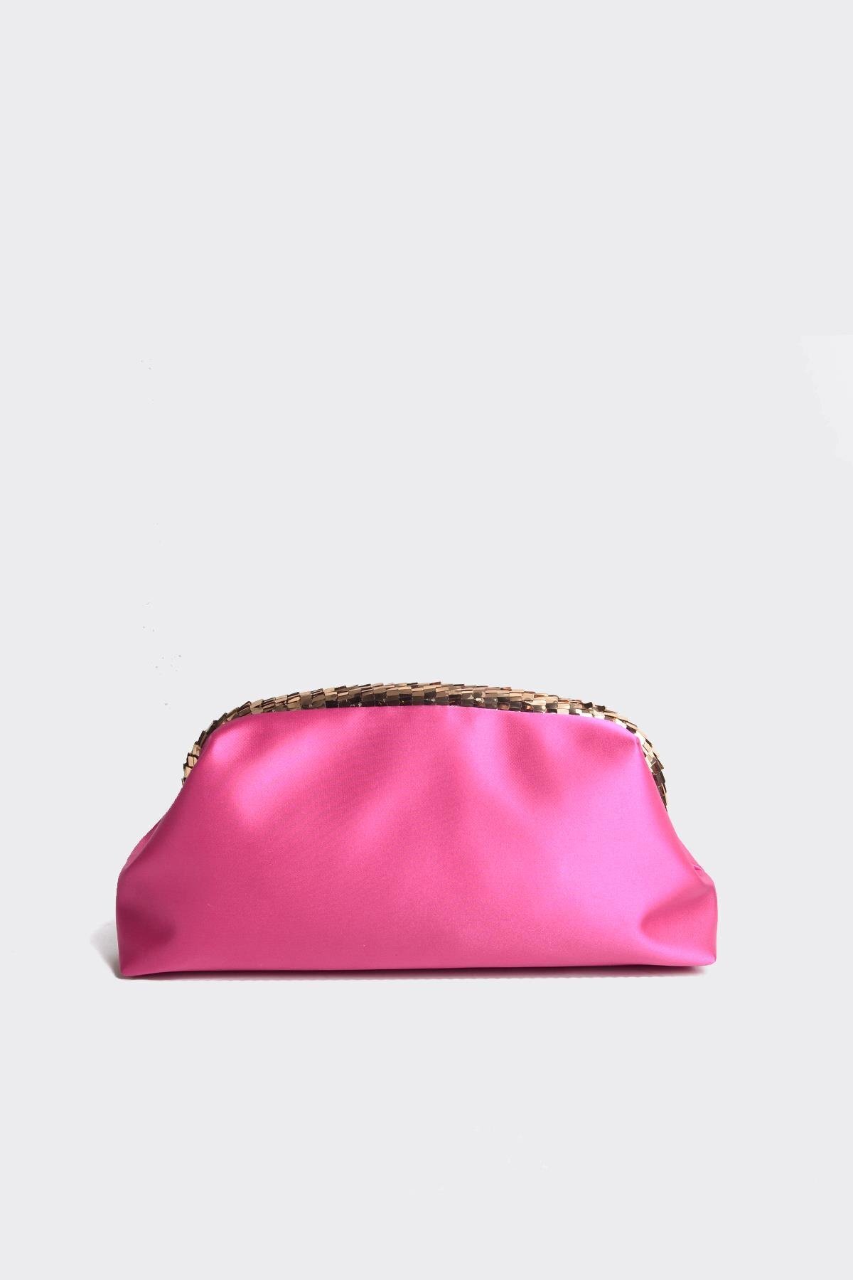 Fuşya Saten Gold Payet Detaylı Clutch Abiye Çanta Fuşya Saten Gold Payet Detaylı Clutch Abiye Çanta 0849BR23 تک سایز