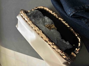 Bej Saten Gold Payet Detaylı Clutch Abiye Çanta Bej Saten Gold Payet Detaylı Clutch Abiye Çanta 0849BR23 تک سایز