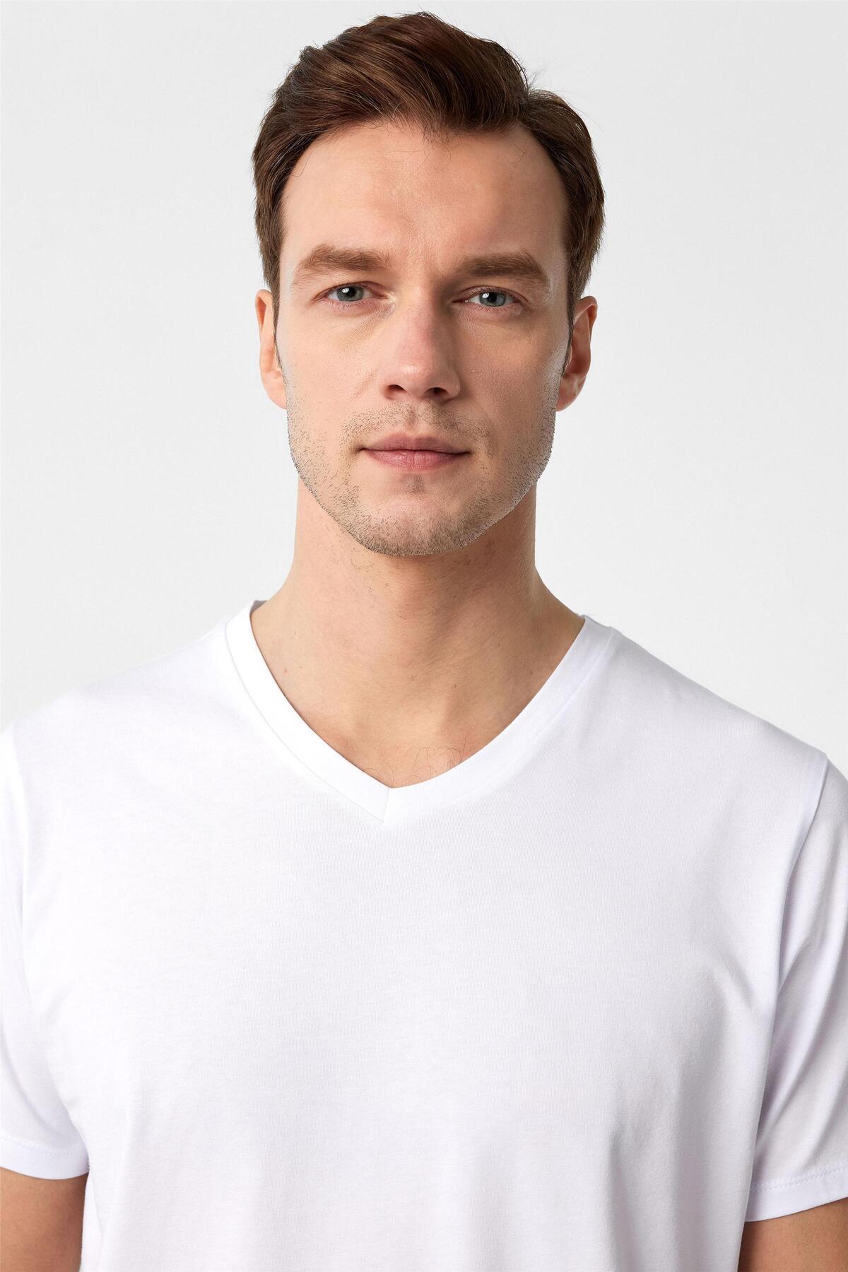 Beyaz Slim Fit Düz V Yaka Tişört Beyaz Slim Fit Düz V Yaka Tişört TS1014000398 2XL