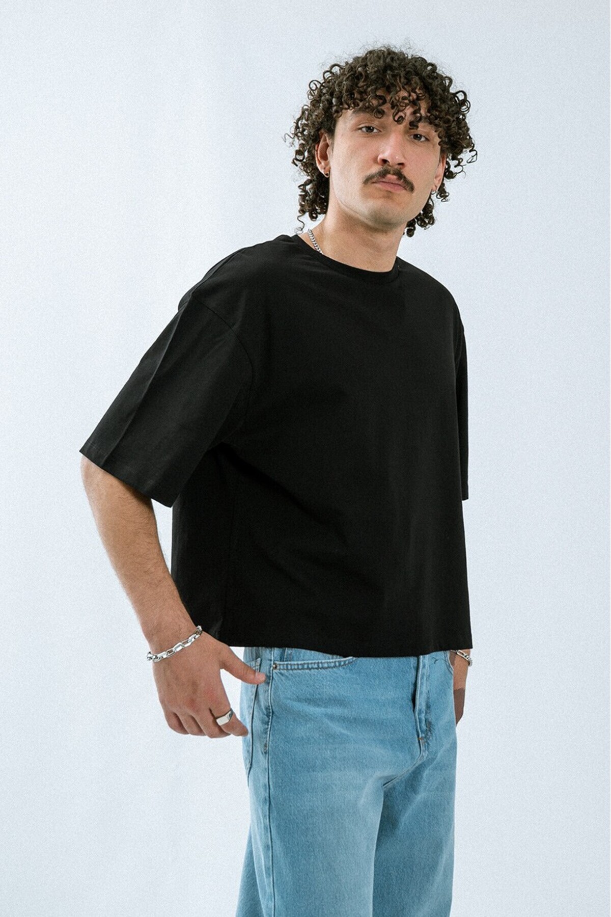 Siyah Boxy Crop Erkek Tişört Siyah Boxy Crop Erkek Tişört UK1428SY XL
