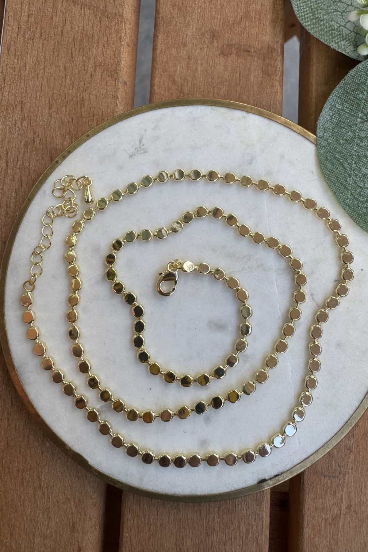 Altın Kaplama Çelik Ezme Pul Zincir Kolye Altın Kaplama Çelik Ezme Pul Zincir Kolye YCKLY000015 60 cm