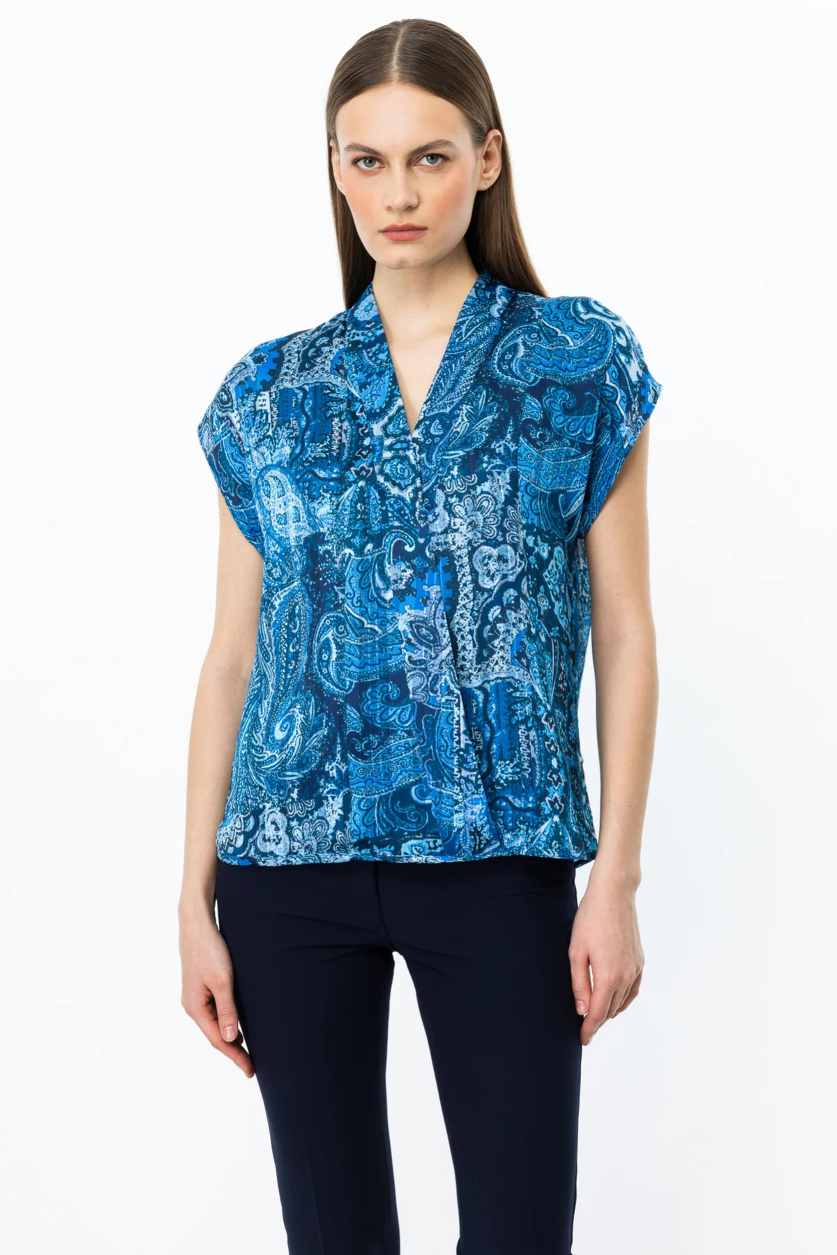 V Yaka Desenli Bluz Mavı-3140 V Yaka Desenli Bluz Mavı-3140 42