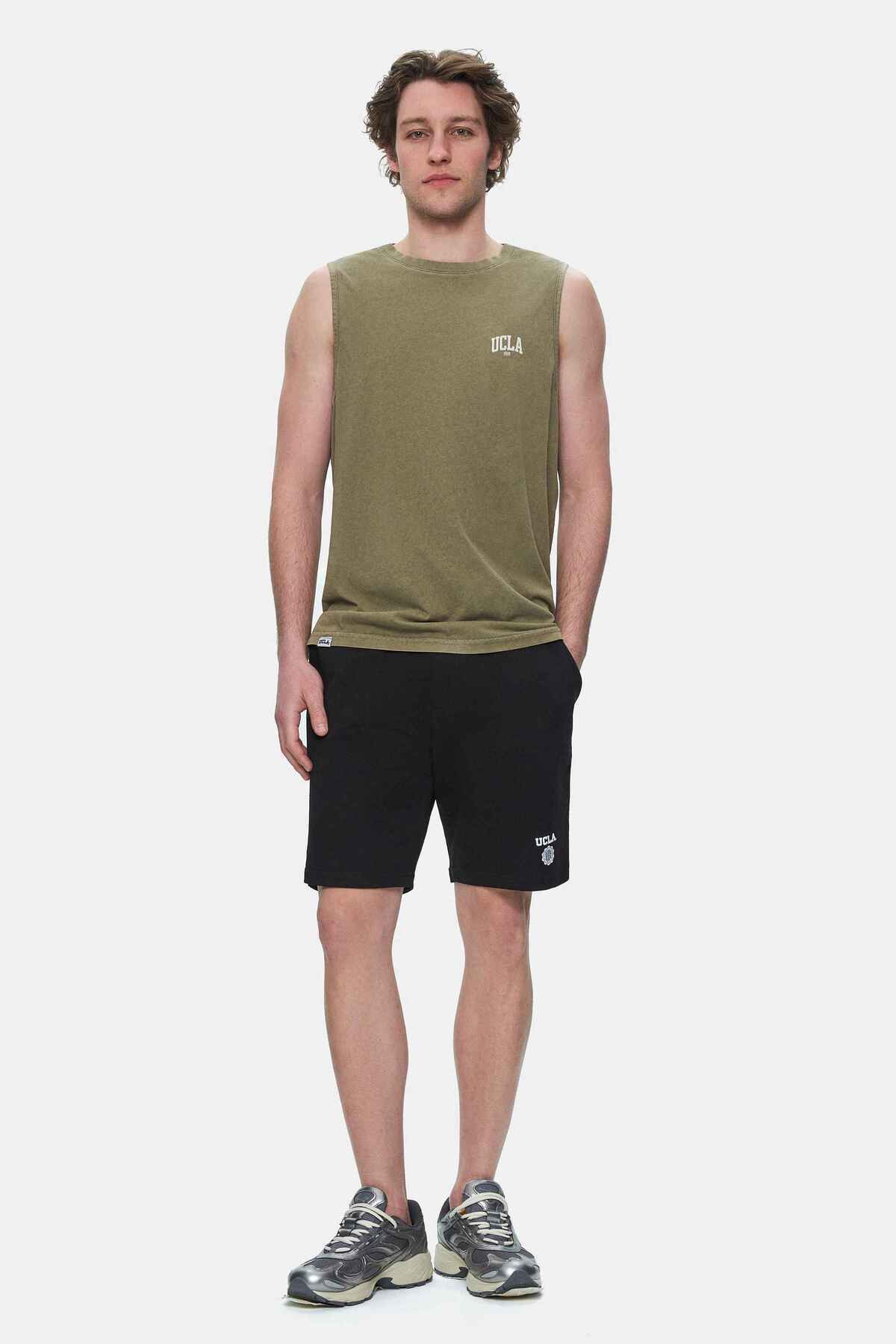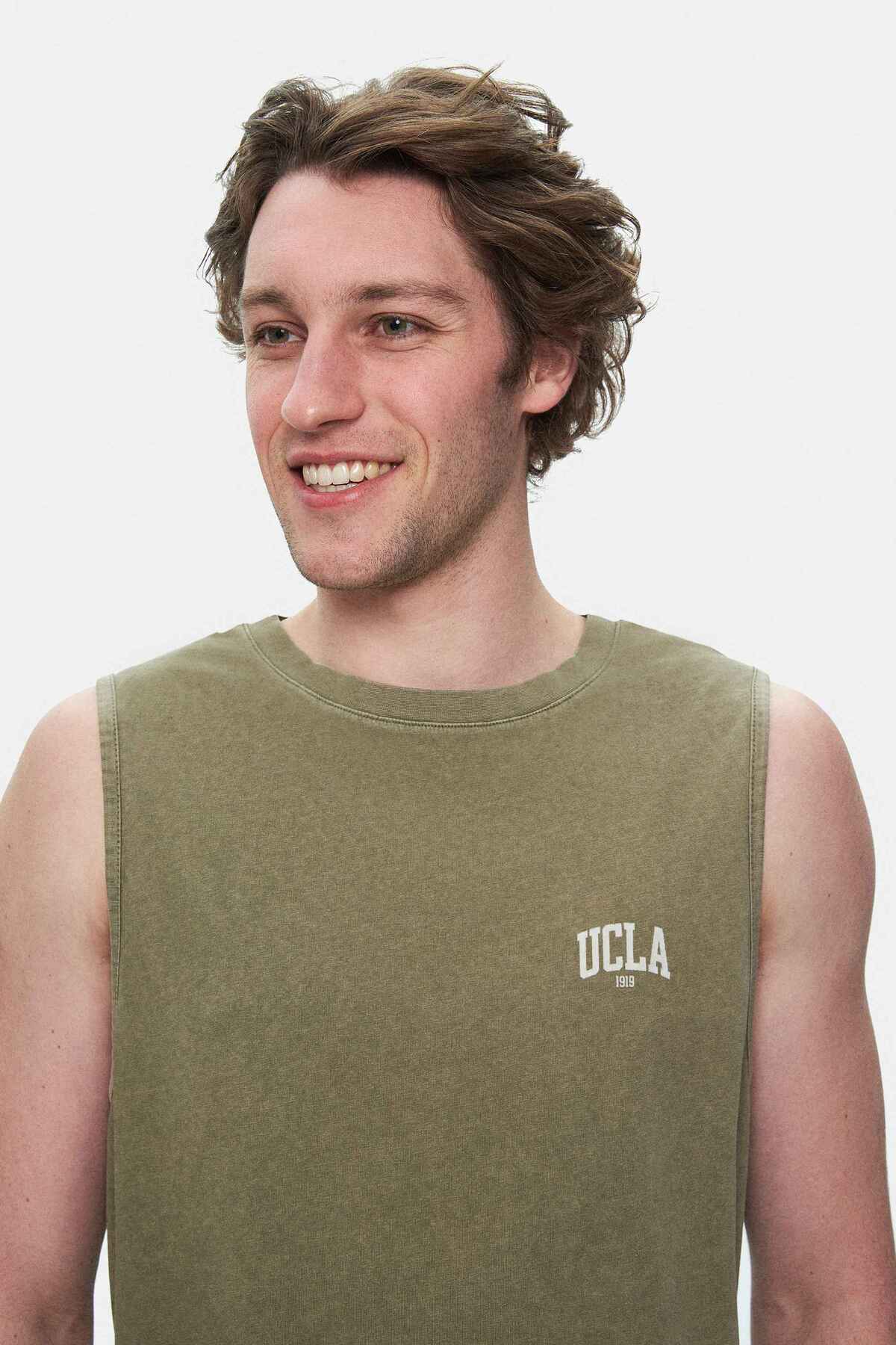 ELTON Koyu Haki Bisiklet Yaka Sıfır Kol Yıkamalı Baskılı Oversize Erkek Tshirt ELTON Koyu Haki Bisiklet Yaka Sıfır Kol Yıkamalı Baskılı Oversize Erkek Tshirt 2XL