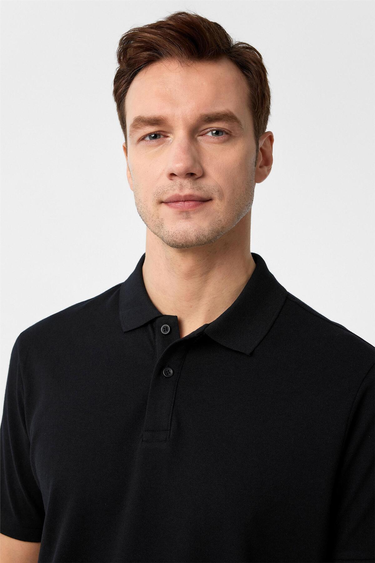 Siyah Regular Armürlü Polo Yaka Tişört Siyah Regular Armürlü Polo Yaka Tişört TS1014000432 2XL
