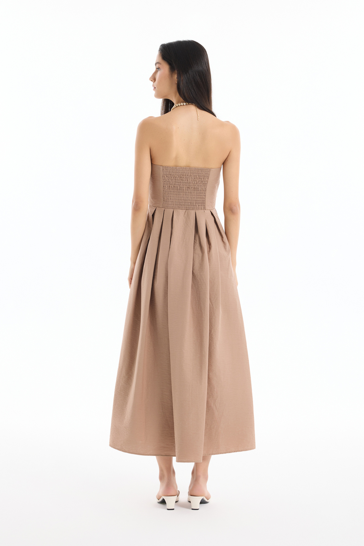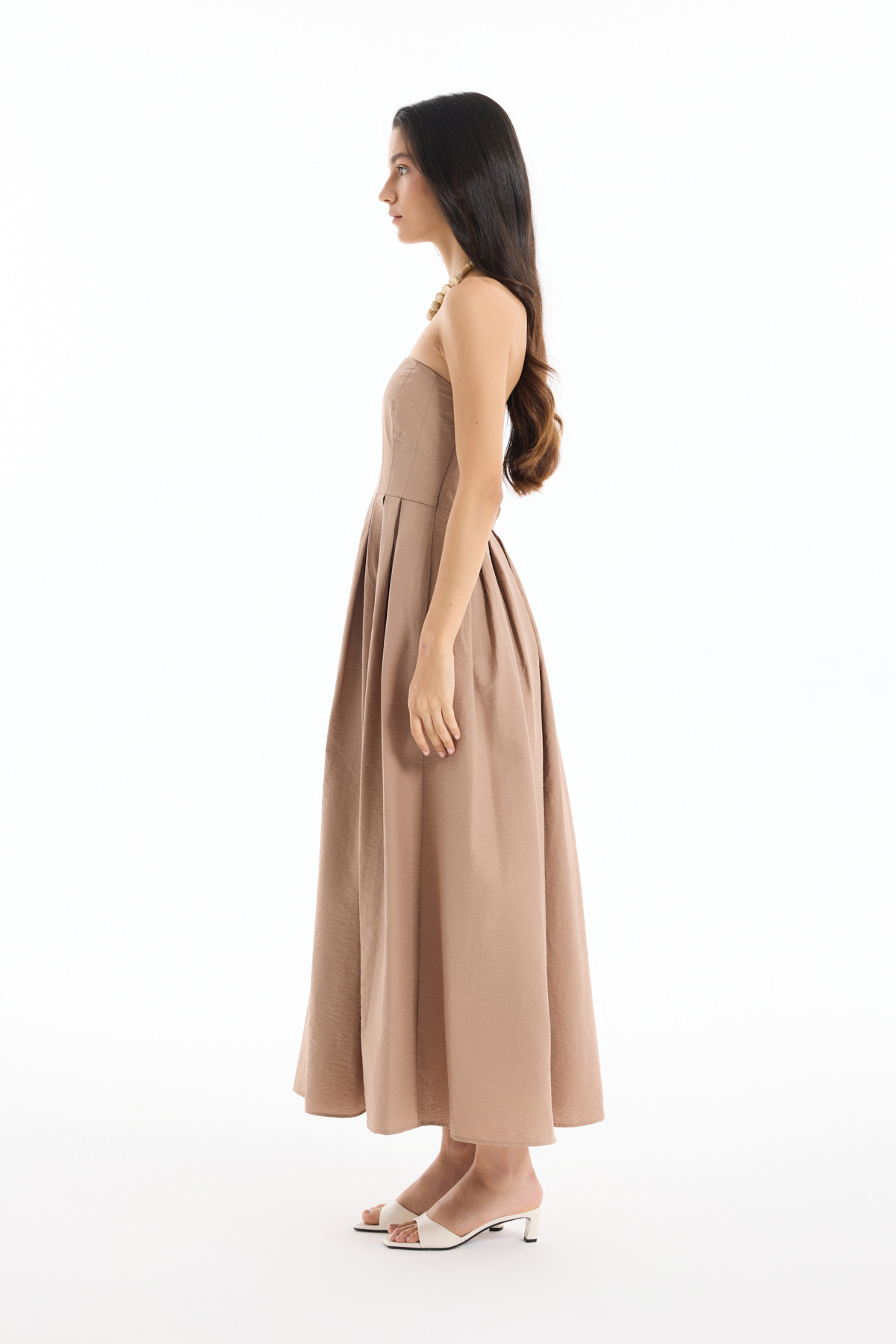 Straplez Pile Detaylı Uzun Elbise Kahverengi Straplez Pile Detaylı Uzun Elbise Kahverengi 24Y31967 L