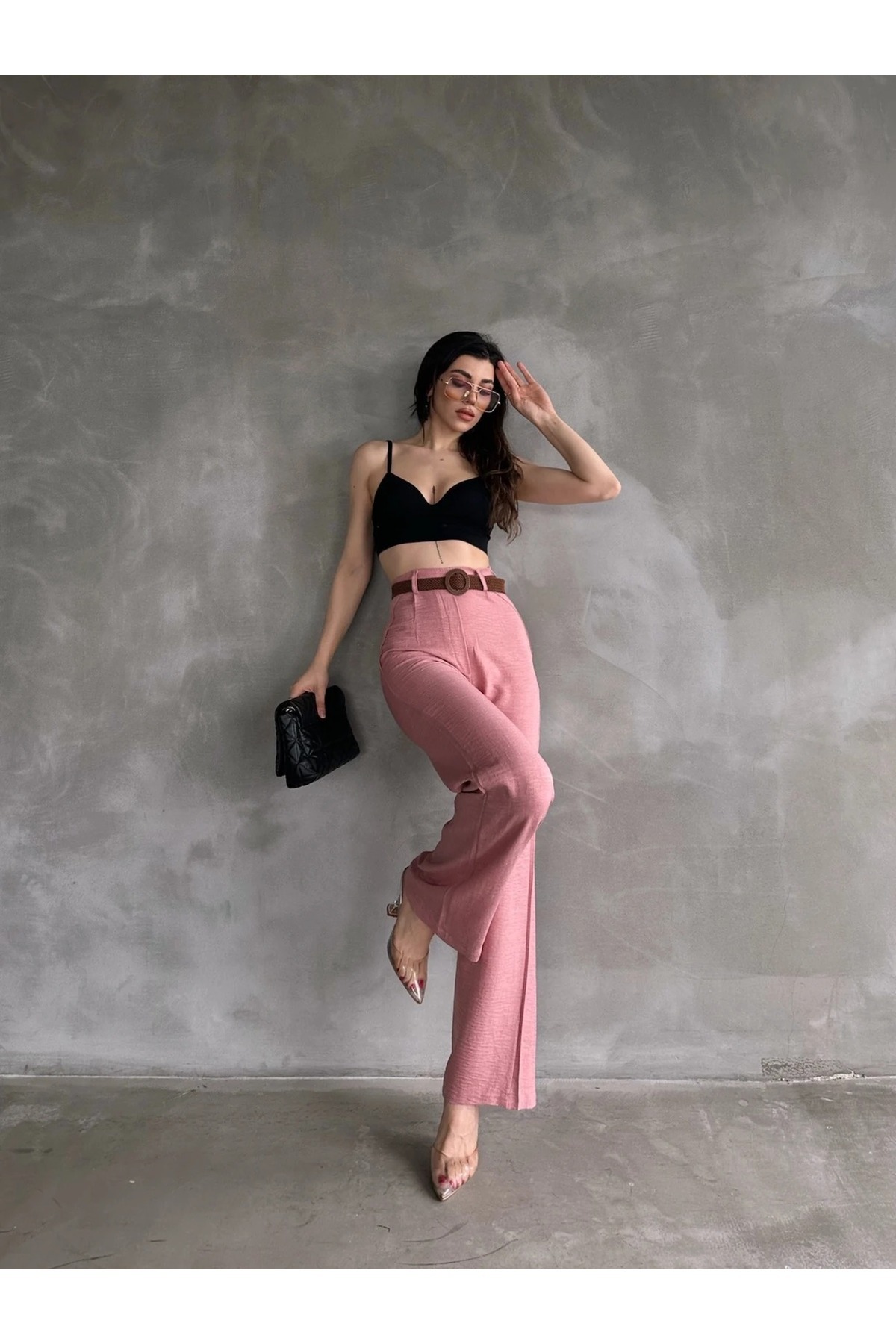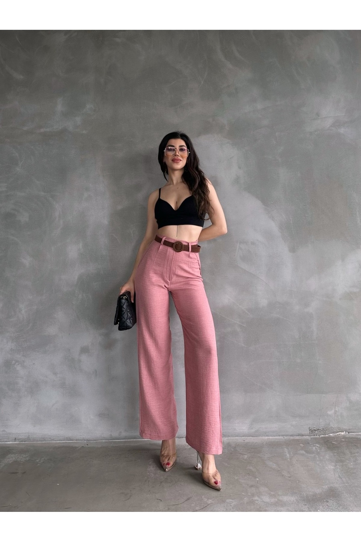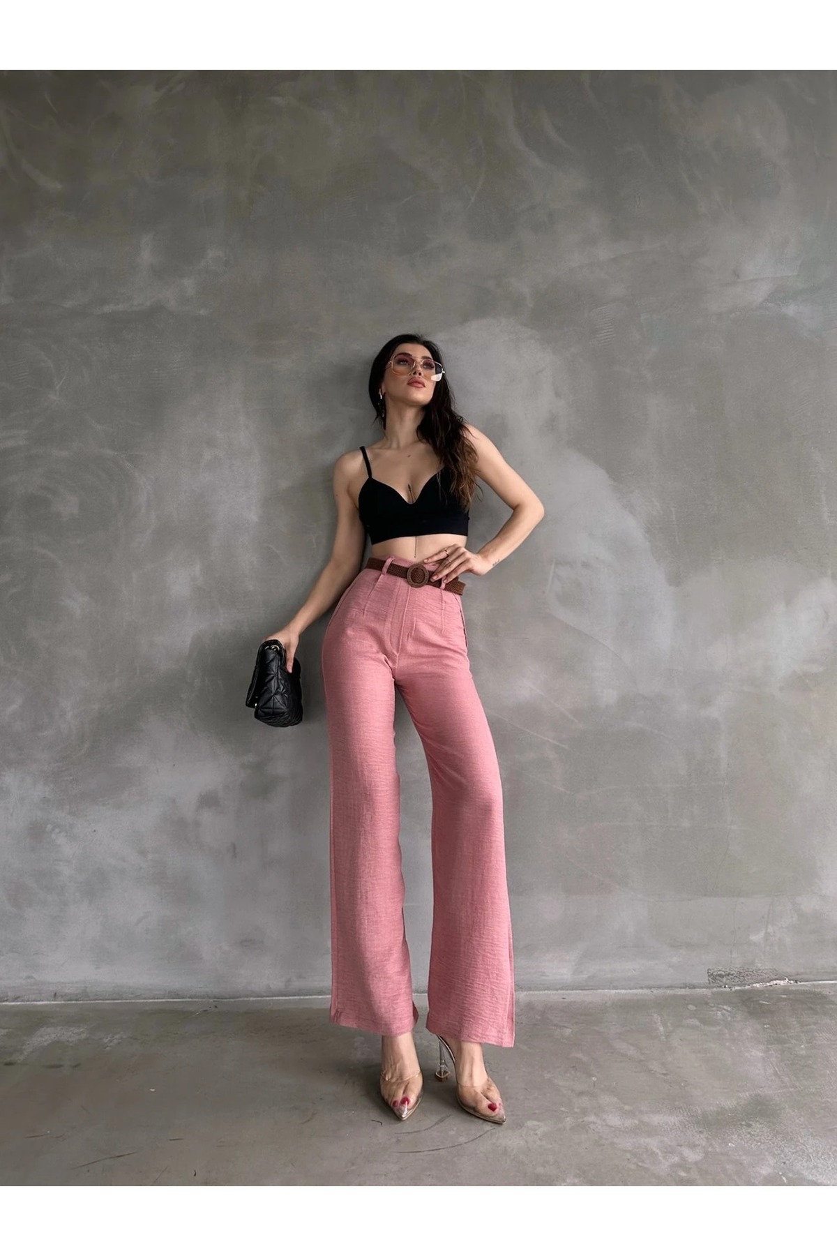 Kadın Beli Kemerli Keten Pantolon Kadın Beli Kemerli Keten Pantolon KETEN PANTOLON 42