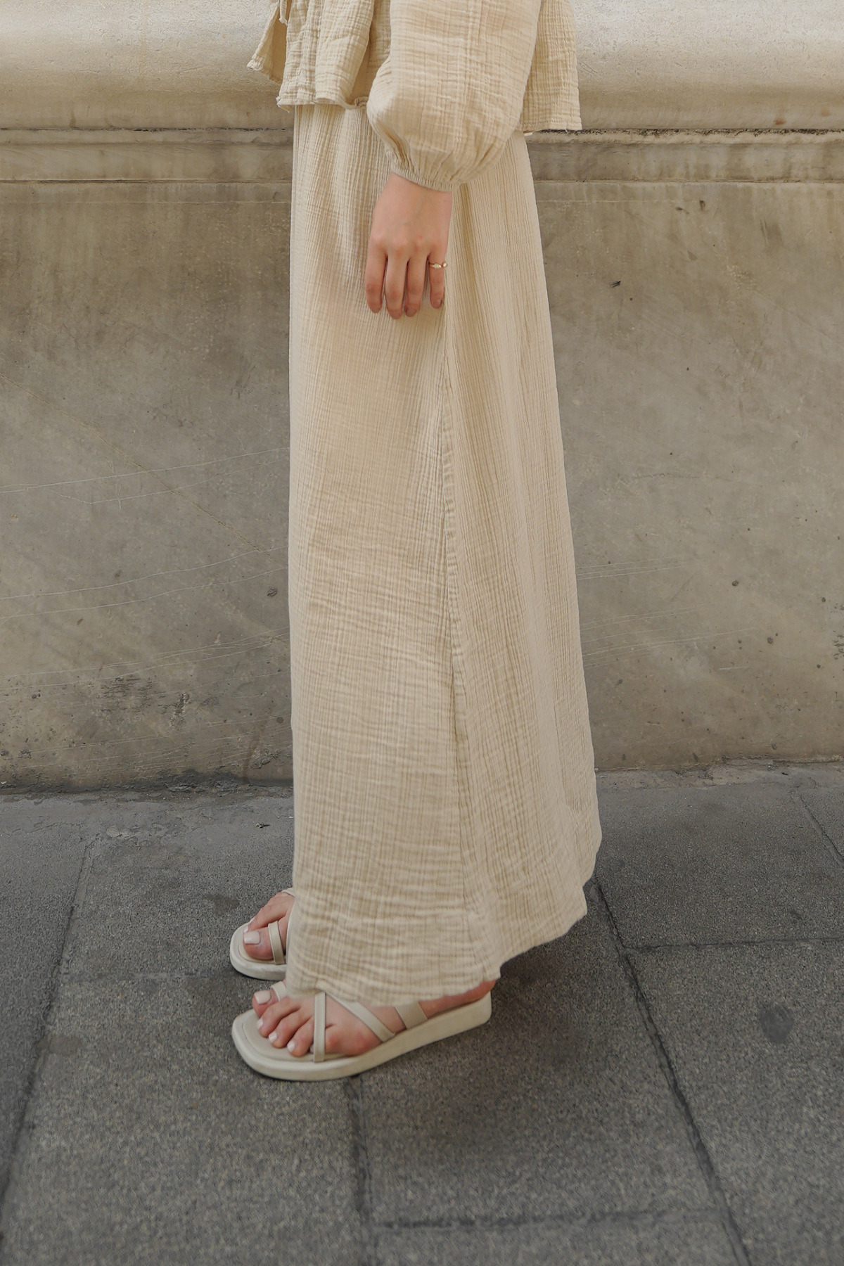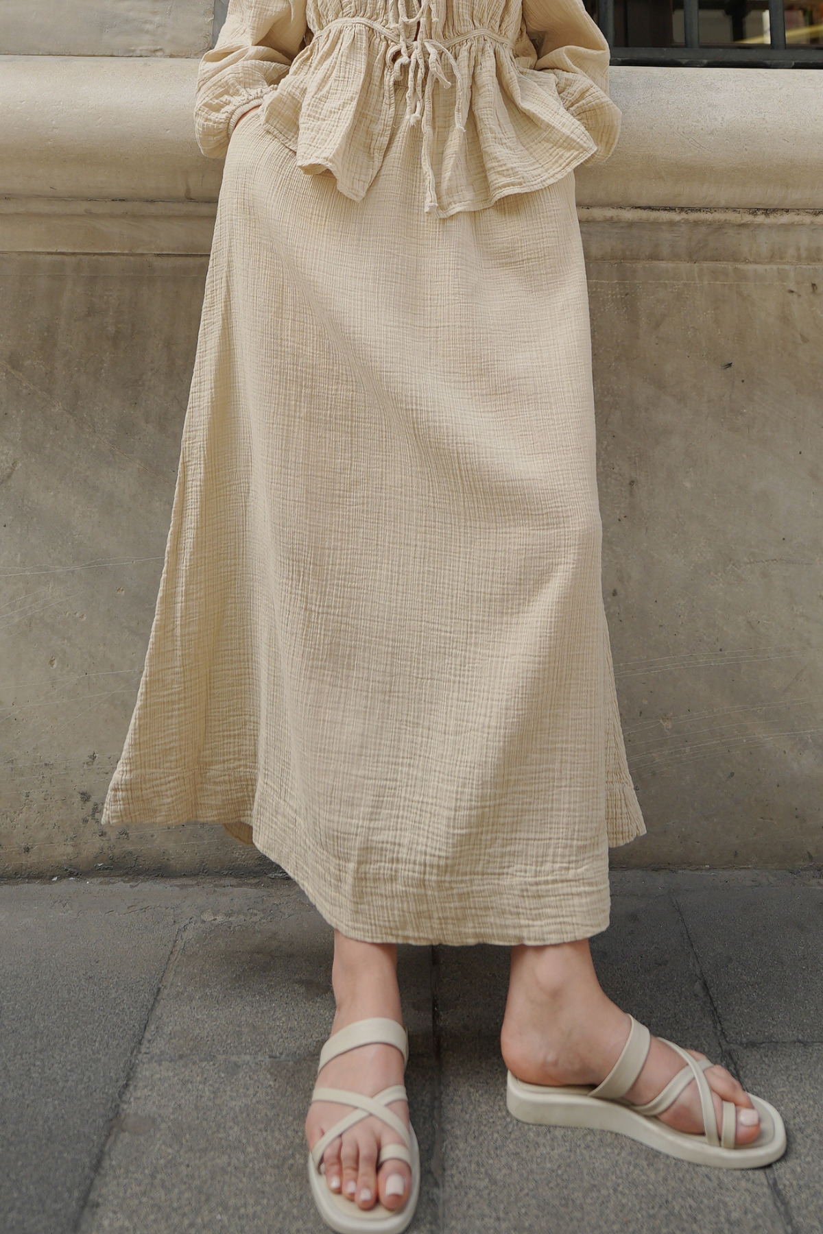Kadın Yıkanmış Pamuk Muslin Lastikli Uzun Etek Kadın Yıkanmış Pamuk Muslin Lastikli Uzun Etek 2514050717 L/XL