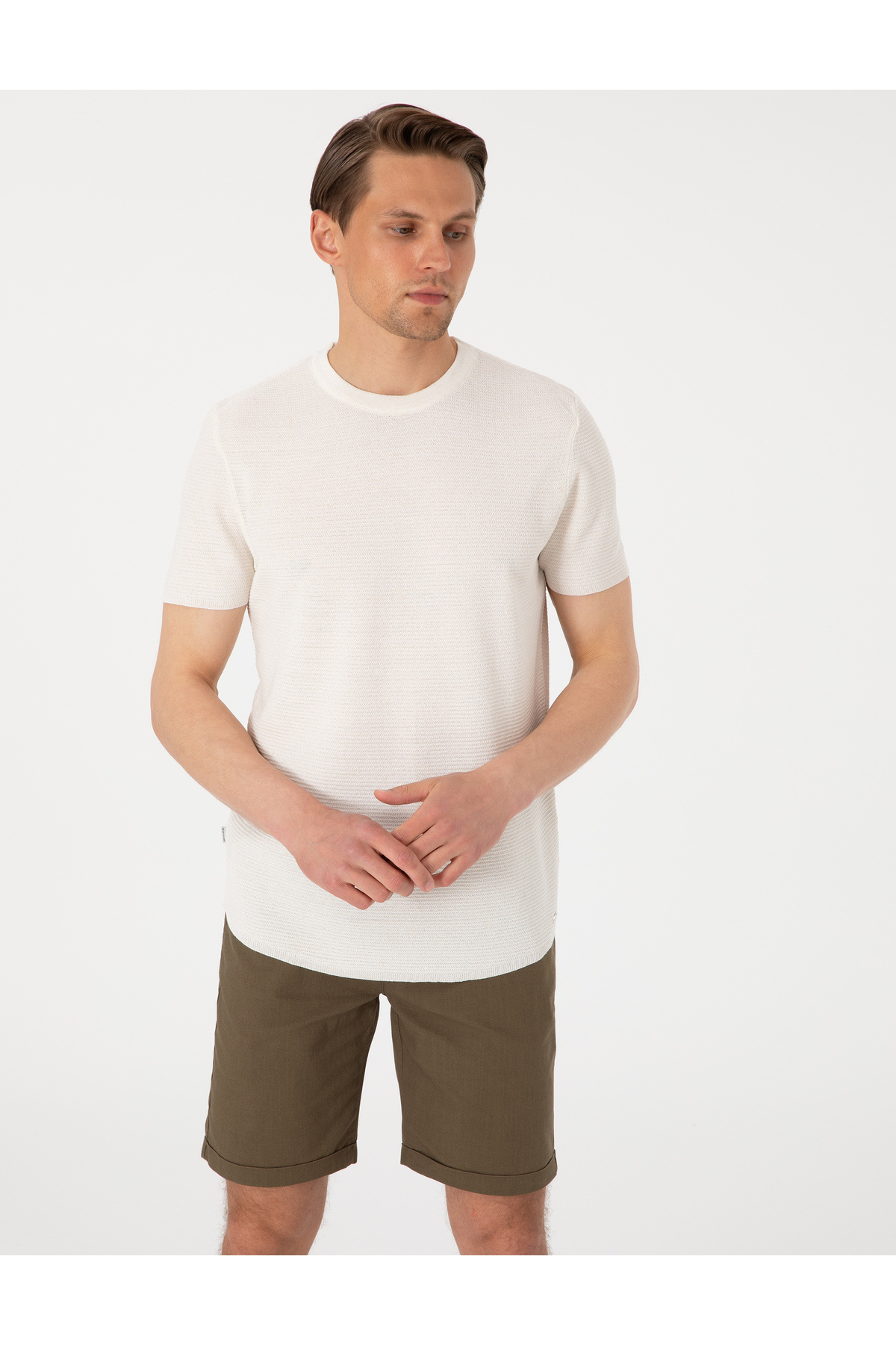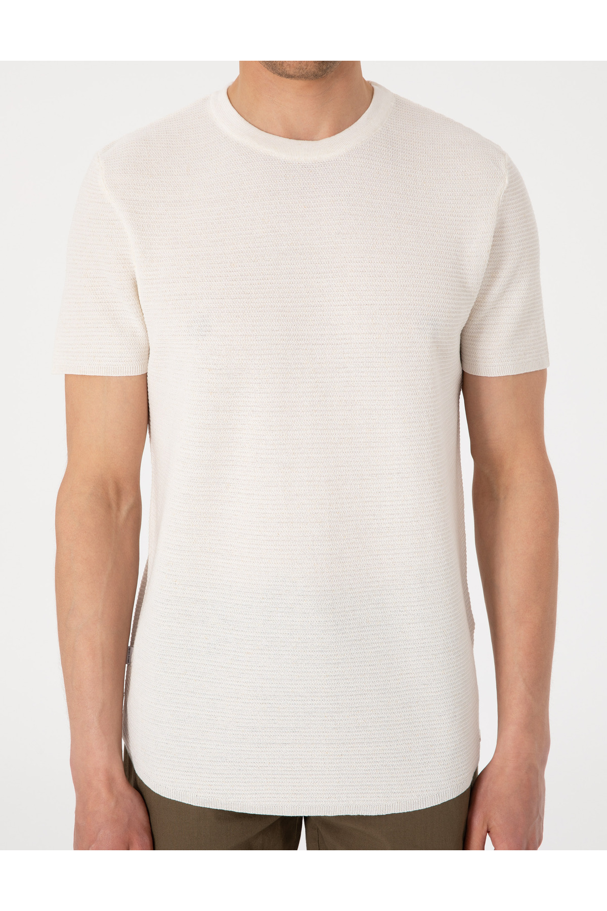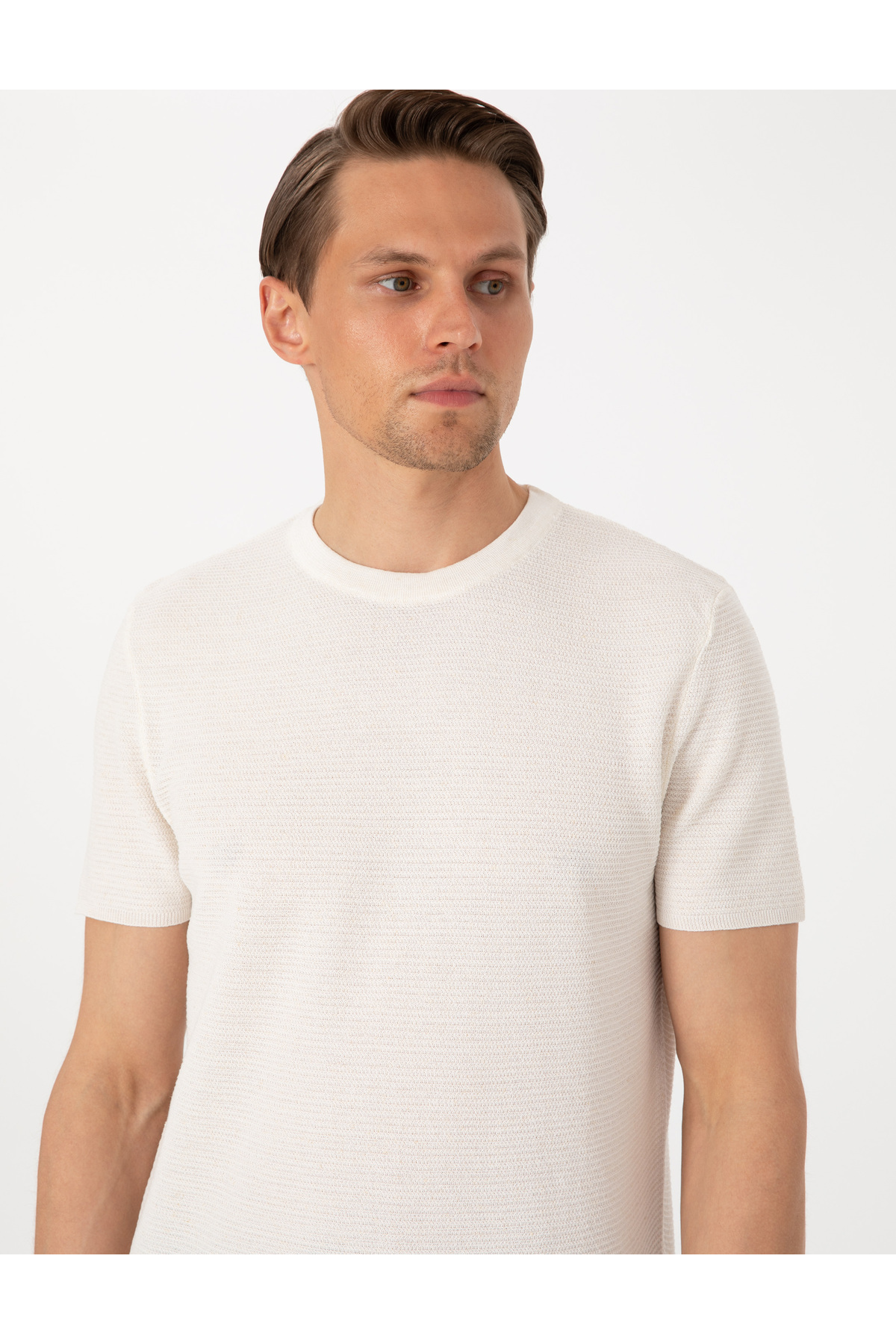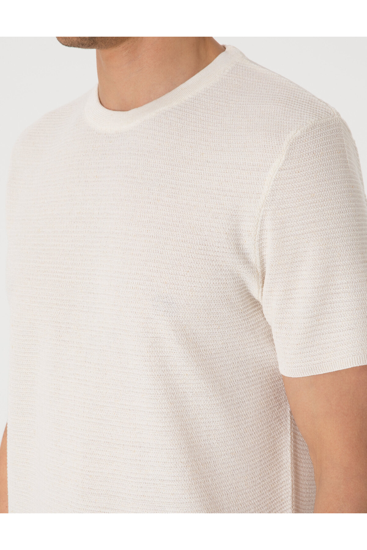 Ekru Slim Fit Keten Karışımlı Bisiklet Yaka Triko Tişört 50305973-VR019 Ekru Slim Fit Keten Karışımlı Bisiklet Yaka Triko Tişört 50305973-VR019 1178636 3XL
