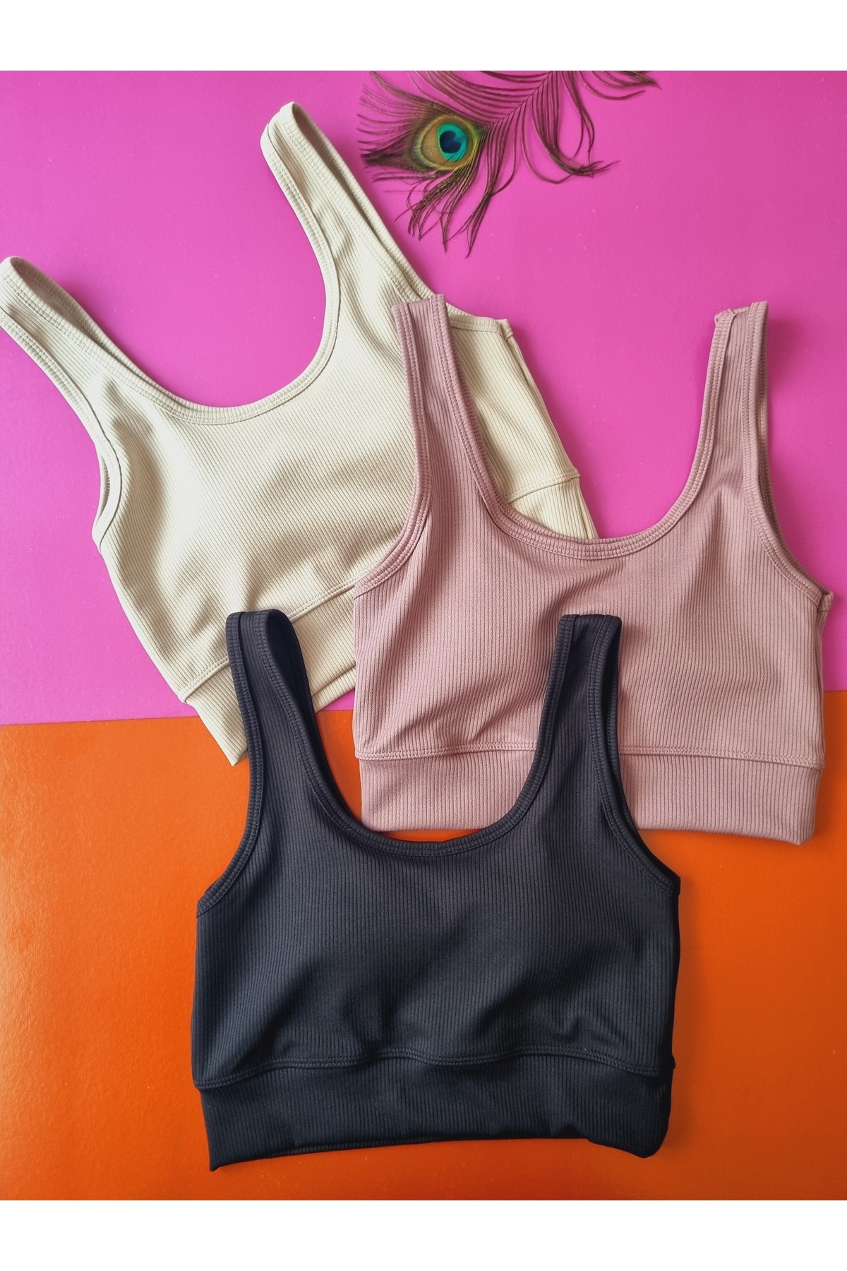Fitilli 3'lü Siyah, Açık Mürdüm ve Krem Renk Çıkarılıp Takılabilir Pedli Kadın Büstiyer Fitilli 3'lü Siyah, Açık Mürdüm ve Krem Renk Çıkarılıp Takılabilir Pedli Kadın Büstiyer D-6432 XL