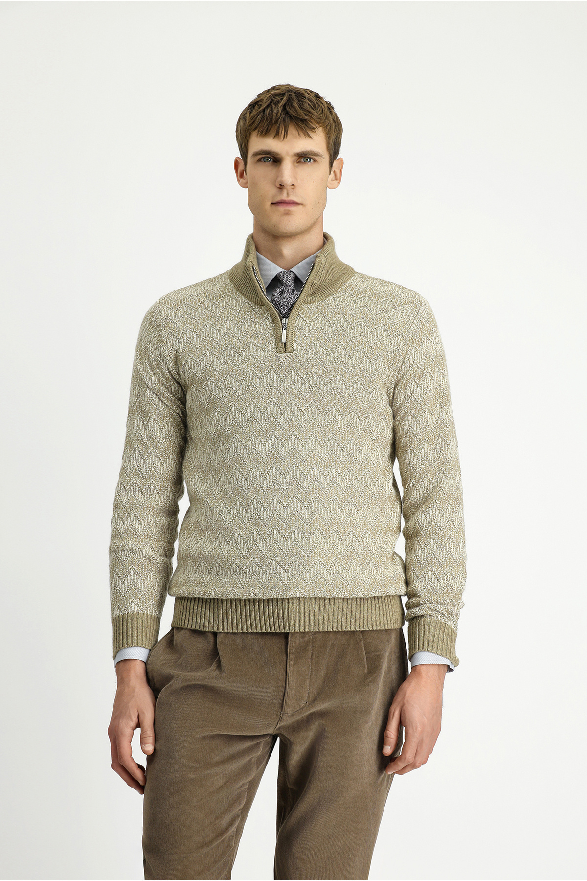Yarım Balıkçı Yaka Regular Fit Fermuarlı Desenli Pamuklu Triko Kazak Yarım Balıkçı Yaka Regular Fit Fermuarlı Desenli Pamuklu Triko Kazak KK25DDH0AR002 7XL
