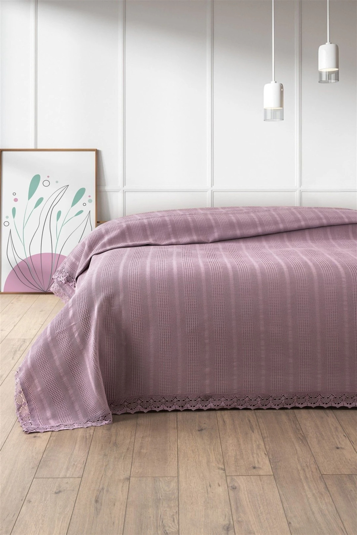 Tivoli Çift Kişilik Bağlama Saçaklı Waffle Pike Takımı - Delfina - Pudra Tivoli Çift Kişilik Bağlama Saçaklı Waffle Pike Takımı - Delfina - Pudra 55-2223 تک سایز