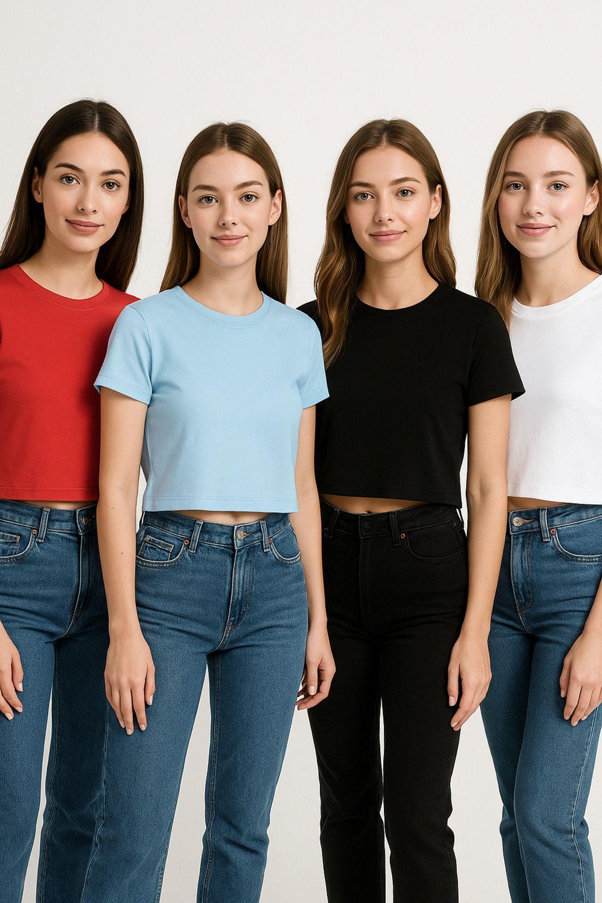 Kadın 4'lü Paket Oversize Crop Tişört %100 Pamuk Bisiklet Yaka T-Shirt Kadın 4'lü Paket Oversize Crop Tişört %100 Pamuk Bisiklet Yaka T-Shirt rscrp1 L