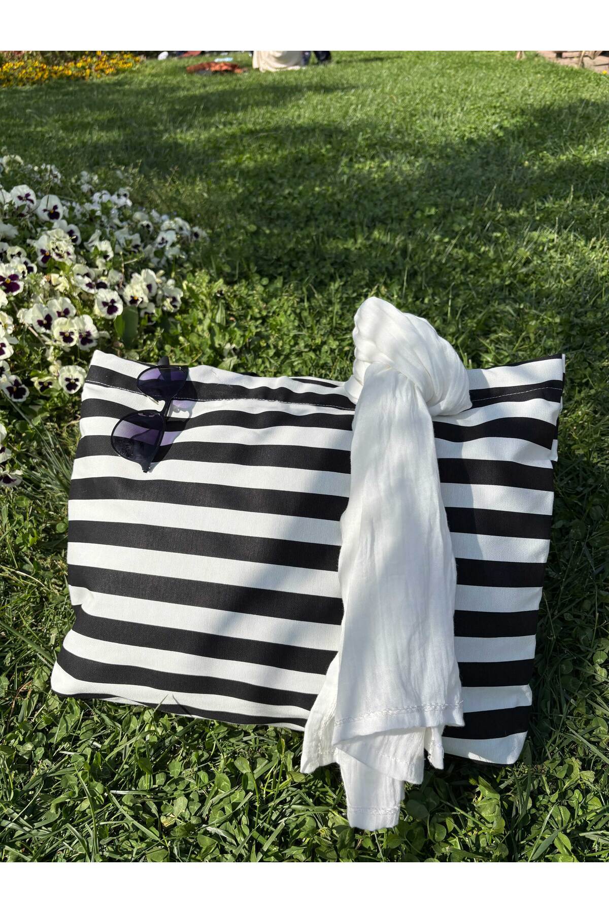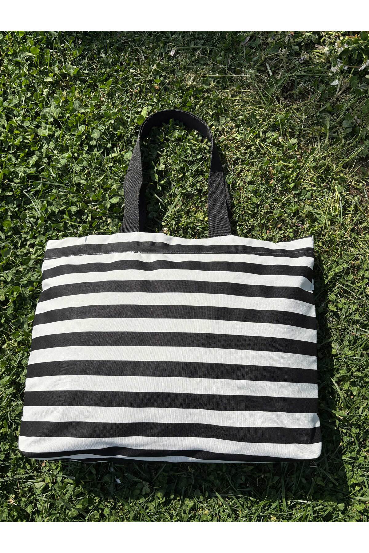 Siyah Beyaz Çizgili Su Geçirmez Duck Keten Plaj Çantası | Büyük Boy 45x55 cm | Fermuarlı, Cepli Siyah Beyaz Çizgili Su Geçirmez Duck Keten Plaj Çantası | Büyük Boy 45x55 cm | Fermuarlı, Cepli PLCNT001 تک سایز