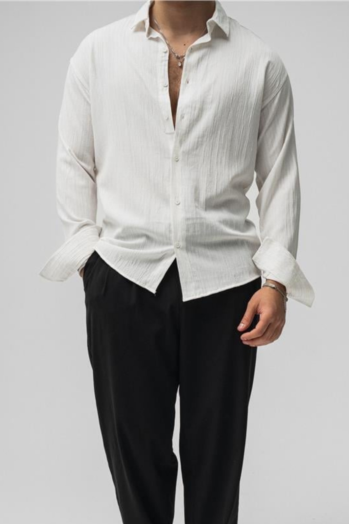Erkek Beyaz Embossed Oversize Gömlek Erkek Beyaz Embossed Oversize Gömlek GMLKWFL05 2XL