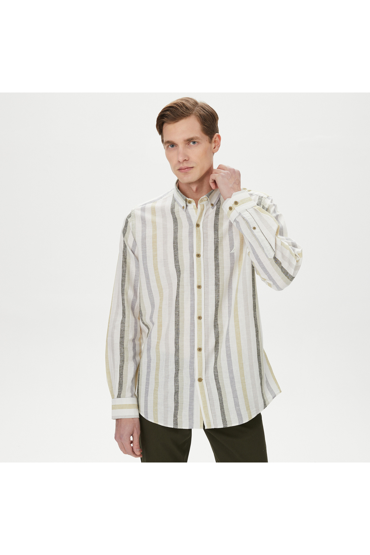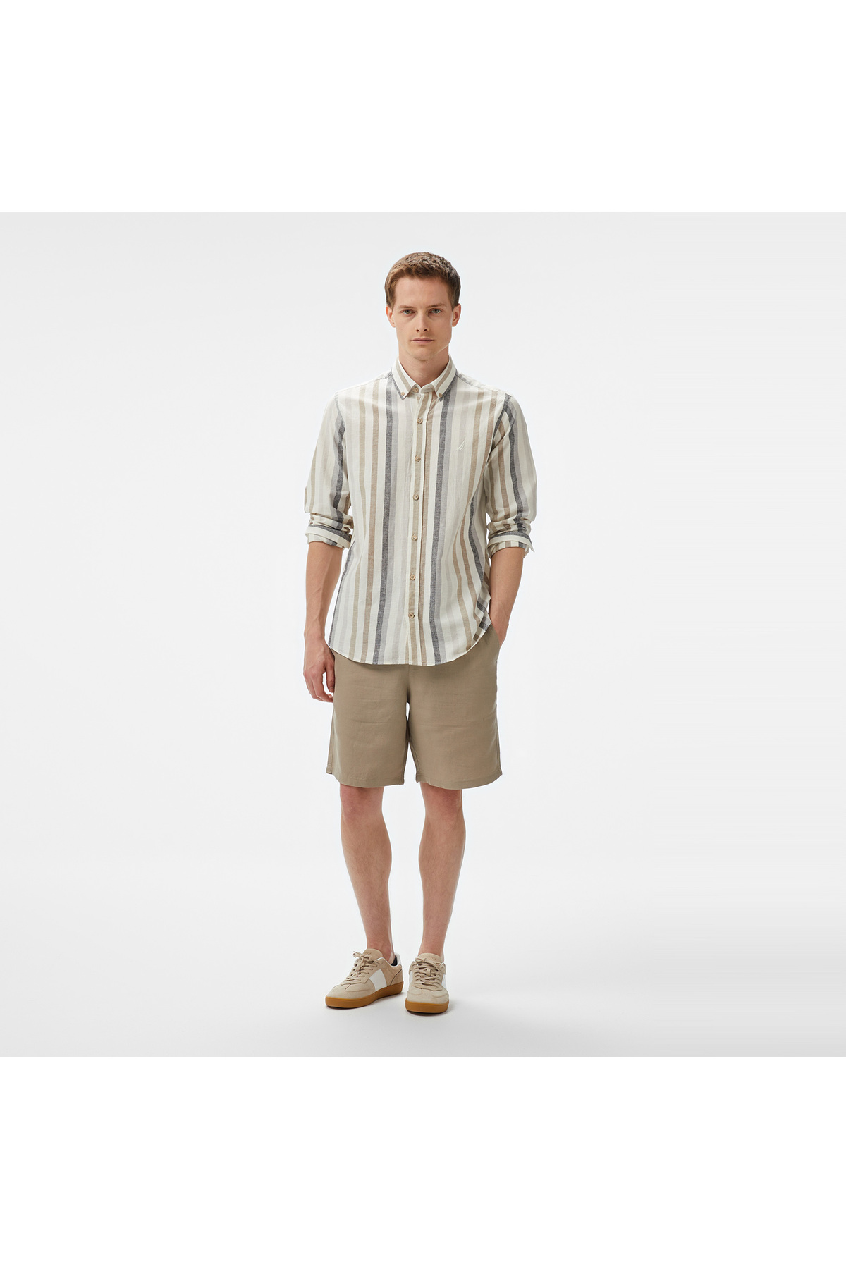 Erkek Kahverengi Classic Fit Çizgili Gömlek Erkek Kahverengi Classic Fit Çizgili Gömlek W55405T 2XL