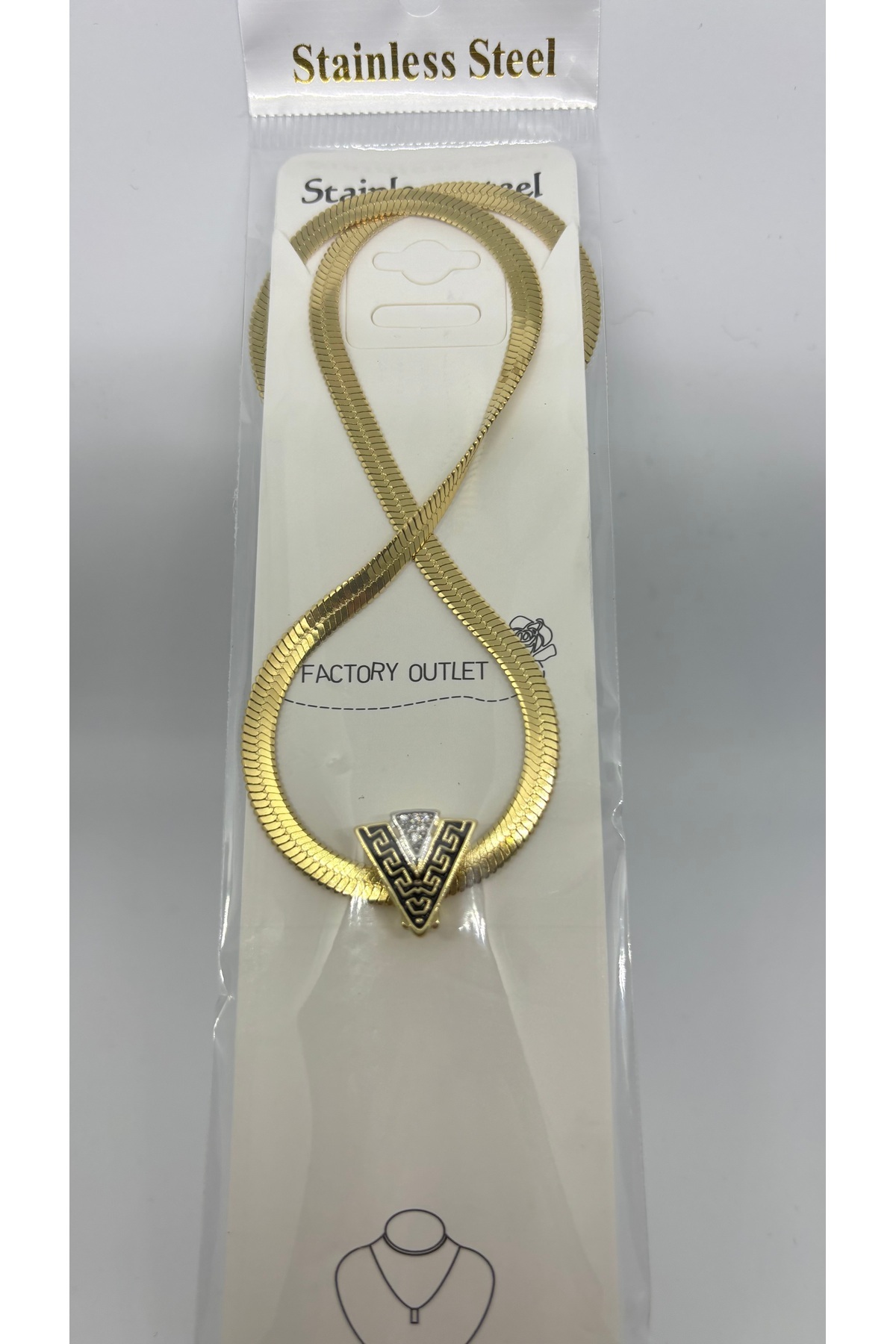 316L İtalya Ezme Zincirli Zirlon Taşlı Gold Renk Çelik Kadın Kolya 316L İtalya Ezme Zincirli Zirlon Taşlı Gold Renk Çelik Kadın Kolya Sp-İtalyan S
