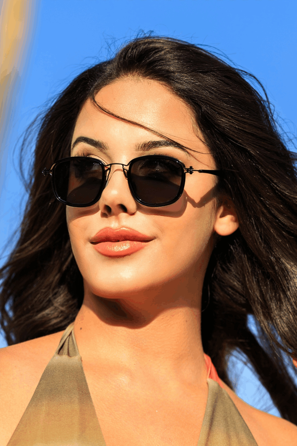Modern Beşgen Tasarım Siyah Çerçeve Siyah Cam Kadın&Erkek Güneş Gözlüğü Modern Beşgen Tasarım Siyah Çerçeve Siyah Cam Kadın&Erkek Güneş Gözlüğü AE2445 تک سایز