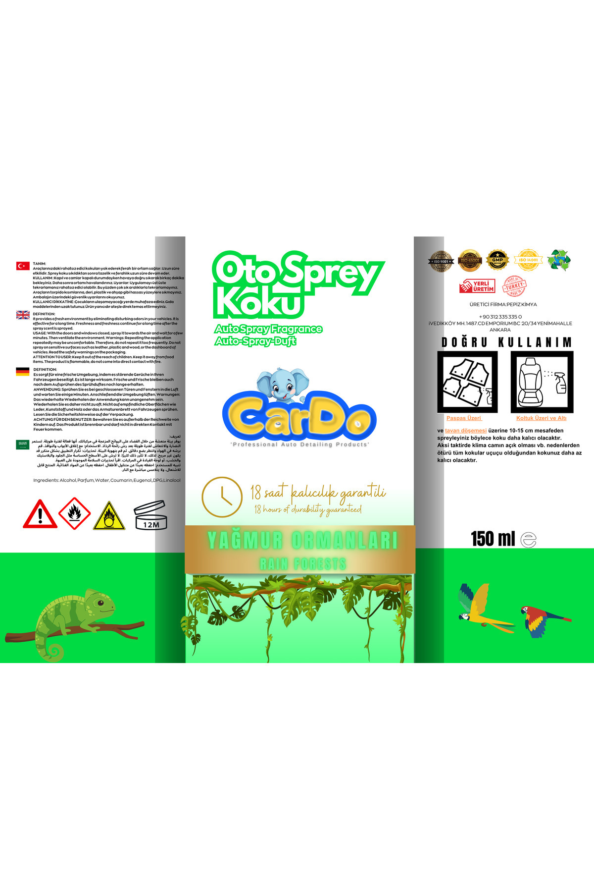 Cardo Premium Oto Kokusu Yüksek Kalıcılık Yağmur Ormanları 150 ml Cardo Premium Oto Kokusu Yüksek Kalıcılık Yağmur Ormanları 150 ml 8684201648586 تک سایز