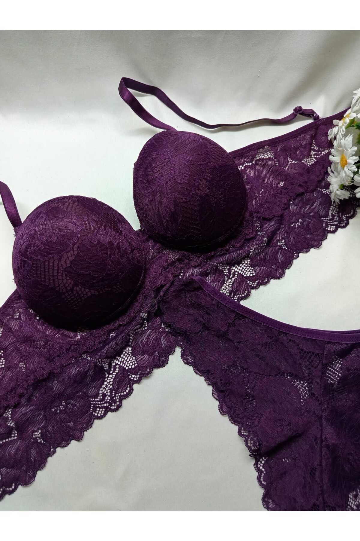 Dantelli Sütyen Takım Patlıcan Moru Dantelli Kurdela Detay Sütyen Takım Dantelli Sütyen Takım Patlıcan Moru Dantelli Kurdela Detay Sütyen Takım 85B