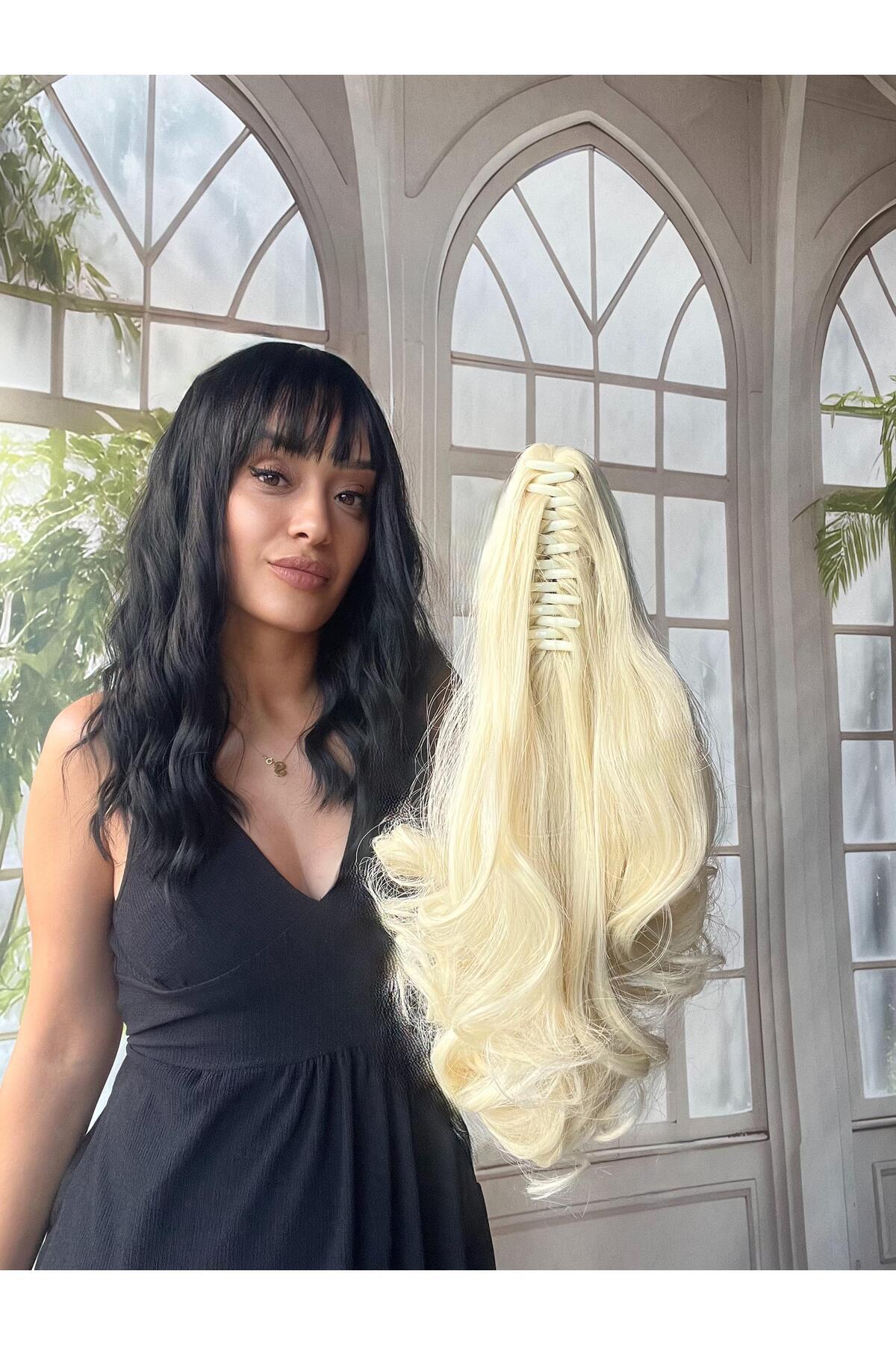 At Kuyruğu Mandallı Tokalı Postiş Platin Sarı At Kuyruğu Mandallı Tokalı Postiş Platin Sarı T6511xx تک سایز