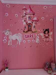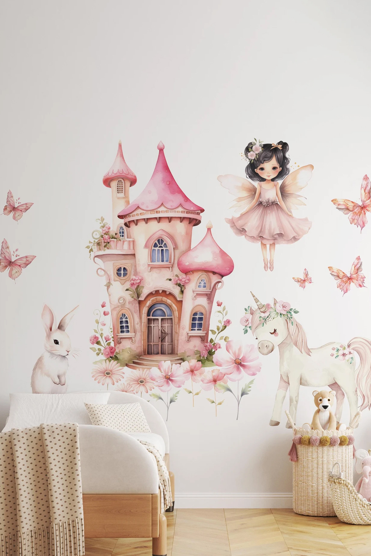 Prenses Şatosu Tavşancık Unicorn Çiçekler ve Kelebekler Kız Çocuk Odası Duvar Sticker Seti Prenses Şatosu Tavşancık Unicorn Çiçekler ve Kelebekler Kız Çocuk Odası Duvar Sticker Seti XC311-3FT6 60 x 90
