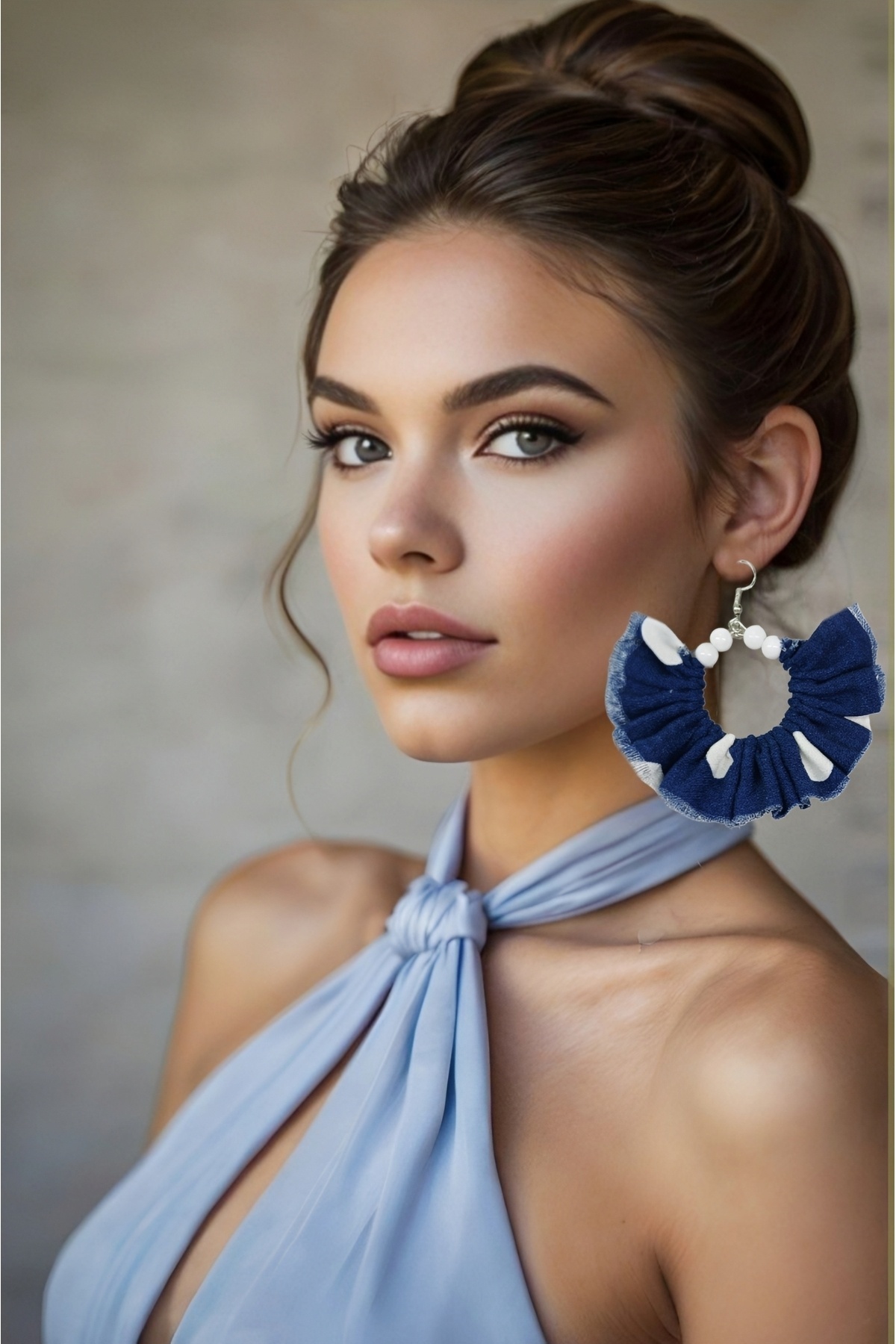 Lacivert Beyaz Puantiyeli Kumaş Beyaz Boncuklu Tasarım Sallantılı Halka Küpe Lacivert Beyaz Puantiyeli Kumaş Beyaz Boncuklu Tasarım Sallantılı Halka Küpe butik370 تک سایز