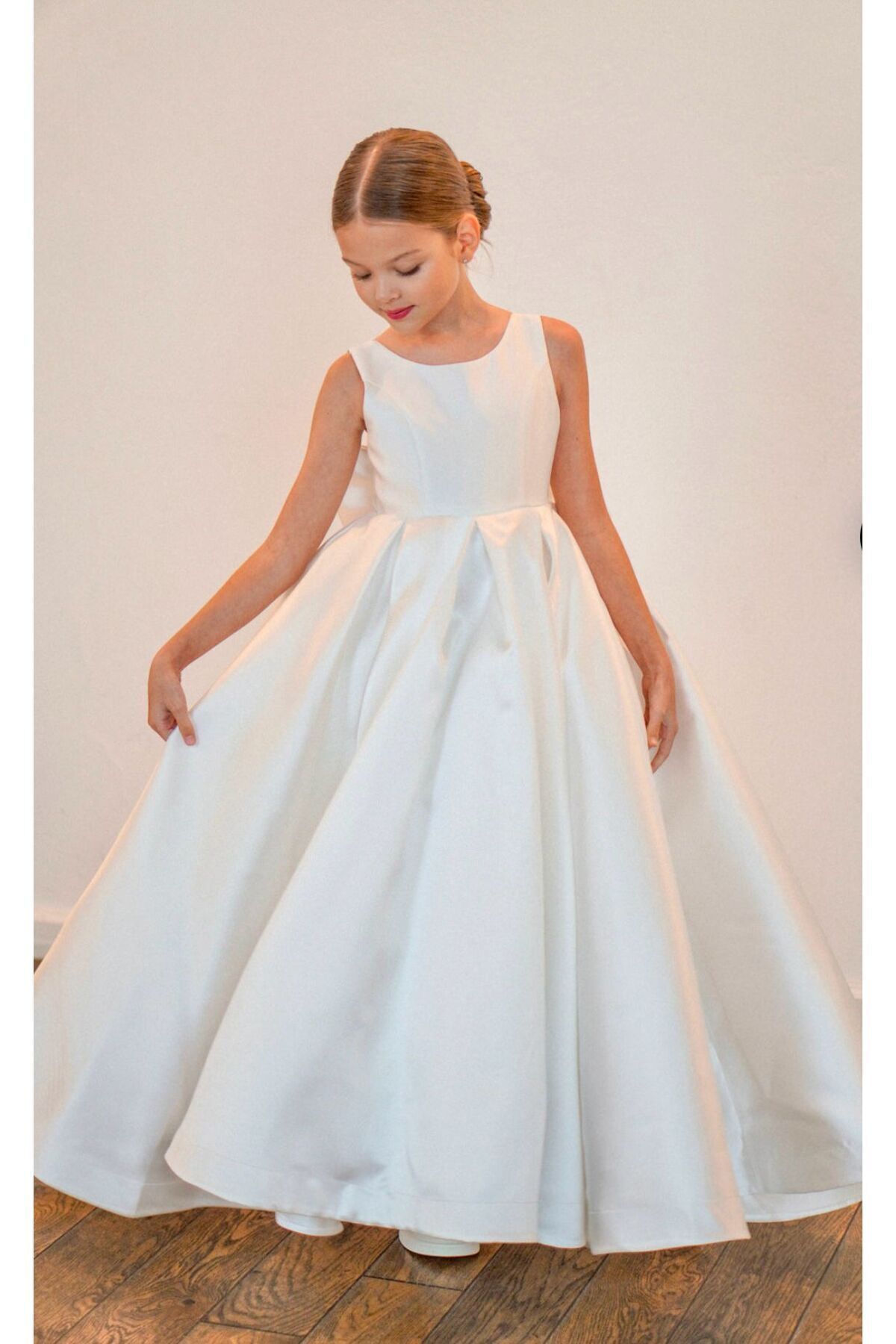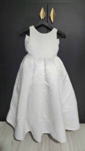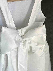 Kız Çocuk Ekru Renk Fiyonk Detaylı Tasarım Elbise Kız Çocuk Ekru Renk Fiyonk Detaylı Tasarım Elbise JJ5410 13-14 Yaş
