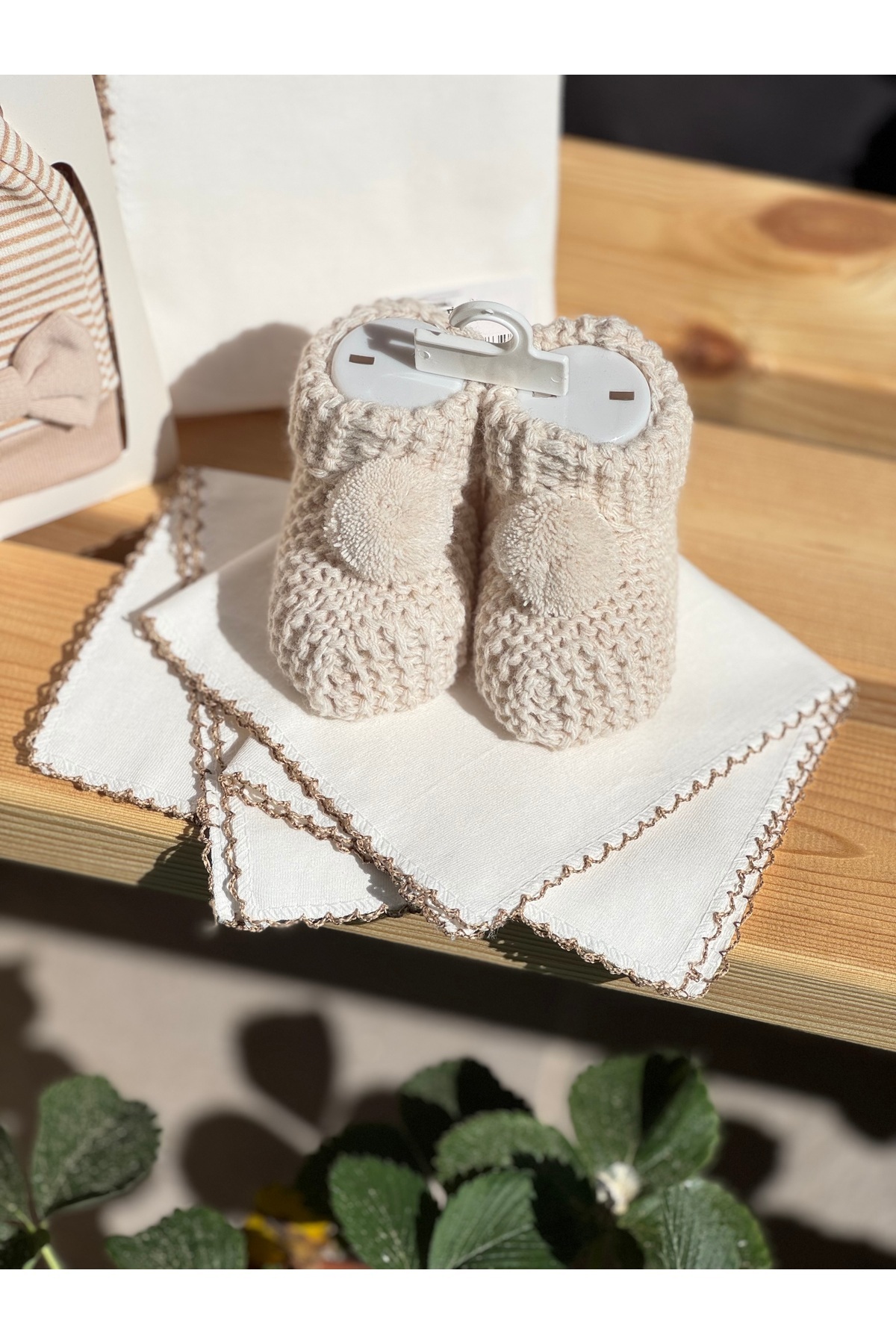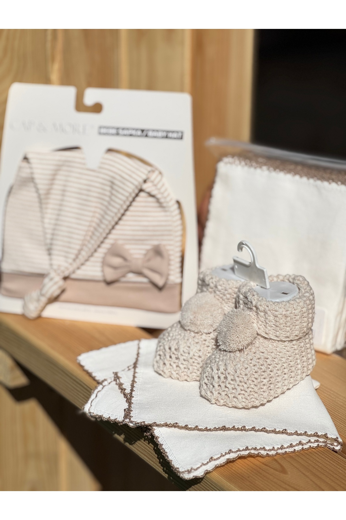 Premium Pamuklu Bere& Organik 10lu Mendil& Bej Patik Yenidoğan Bebek Hediyelik Set Premium Pamuklu Bere& Organik 10lu Mendil& Bej Patik Yenidoğan Bebek Hediyelik Set BJST777 0-6 Ay