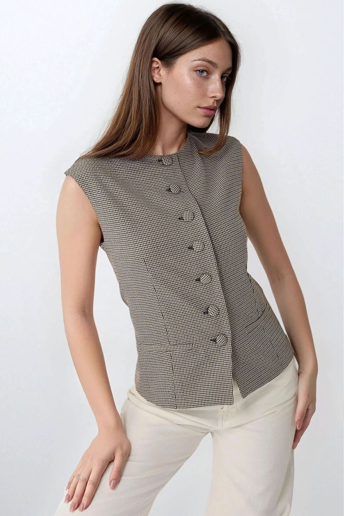 Kareli Desenli Bisiklet Yaka Yelek Kareli Desenli Bisiklet Yaka Yelek M73BIN58 XL