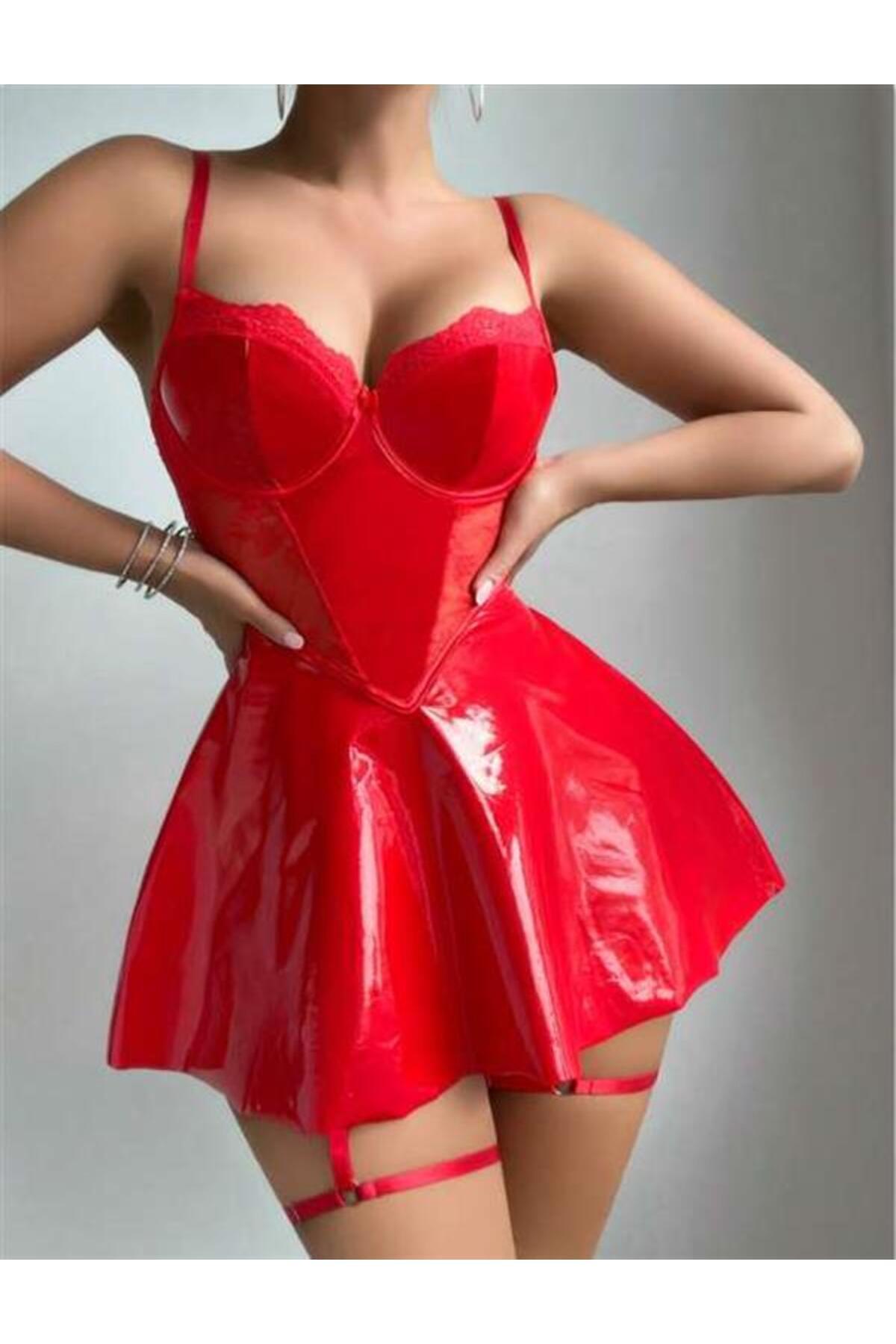KADIN DERİ GÖRÜNÜMLÜ ŞIK MİNİ ELBİSE ÖZEL TASARIM FANTAZİ SEXSİ KOSTÜM KADIN DERİ GÖRÜNÜMLÜ ŞIK MİNİ ELBİSE ÖZEL TASARIM FANTAZİ SEXSİ KOSTÜM 78465145612 XL/L