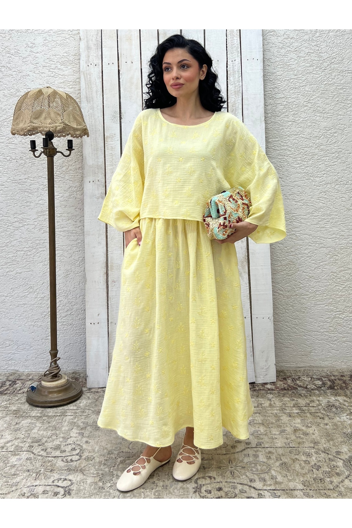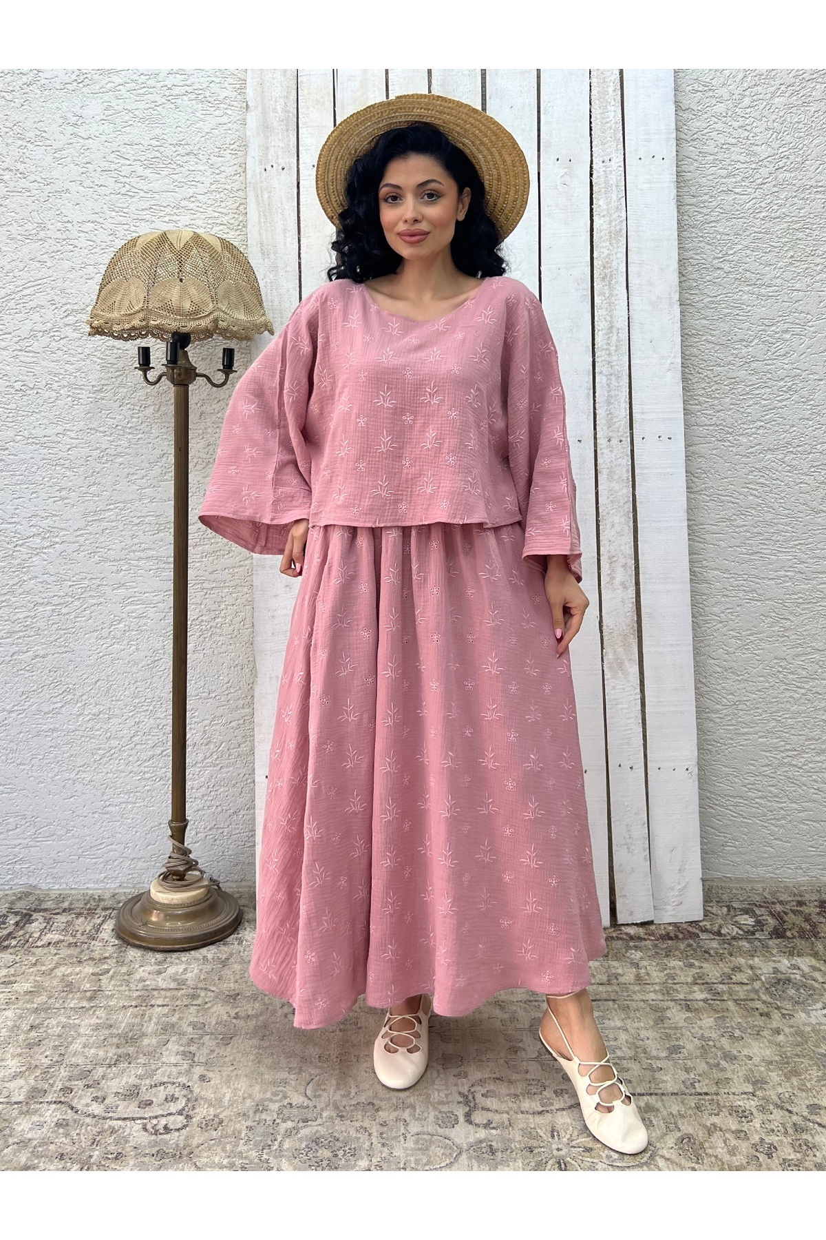 Siyah İşlemeli Müslin Salaş Bluz Ve Kloş Etek Takımı (İŞLEMELİ 2'Lİ TAKIM) Siyah İşlemeli Müslin Salaş Bluz Ve Kloş Etek Takımı (İŞLEMELİ 2'Lİ TAKIM) KCGM13319 L/XL