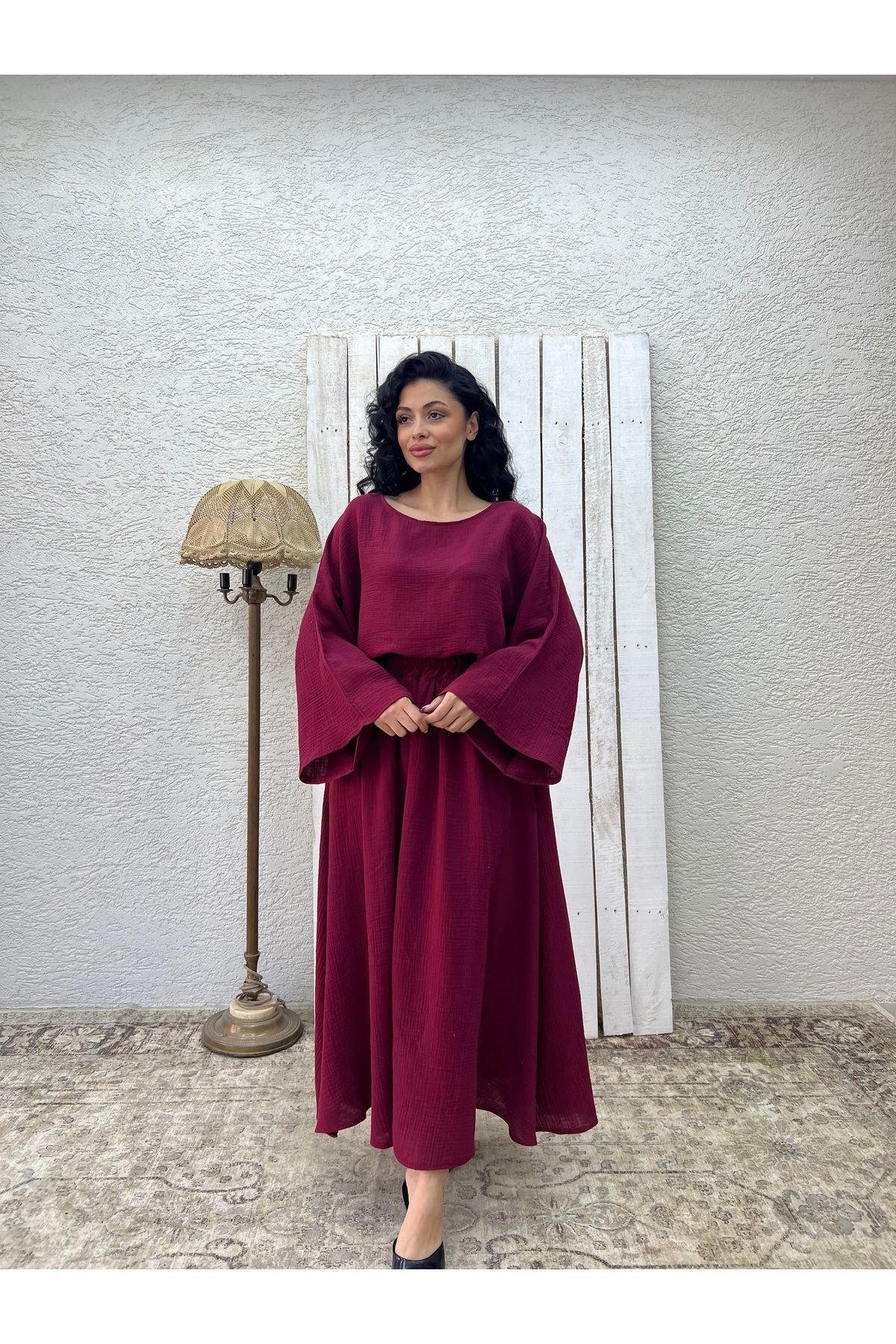 Bordo Müslin Salaş Bluz Ve Kloş Etek Takımı (2'Lİ TAKIM) Bordo Müslin Salaş Bluz Ve Kloş Etek Takımı (2'Lİ TAKIM) KCGM13335 L/XL