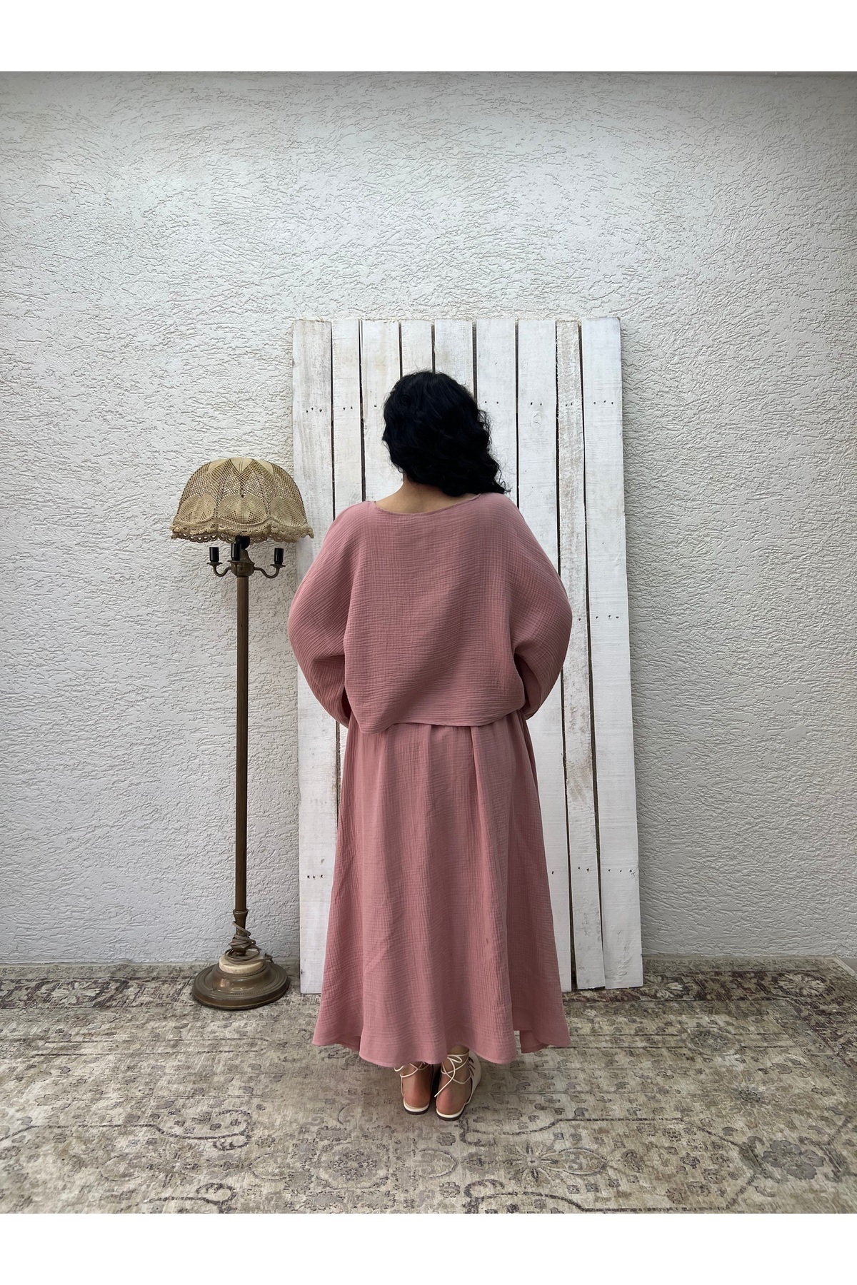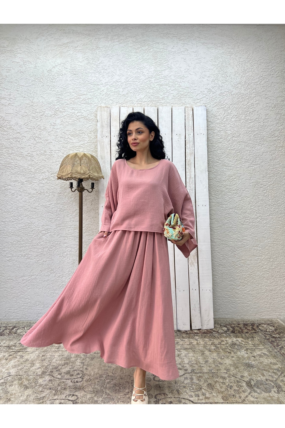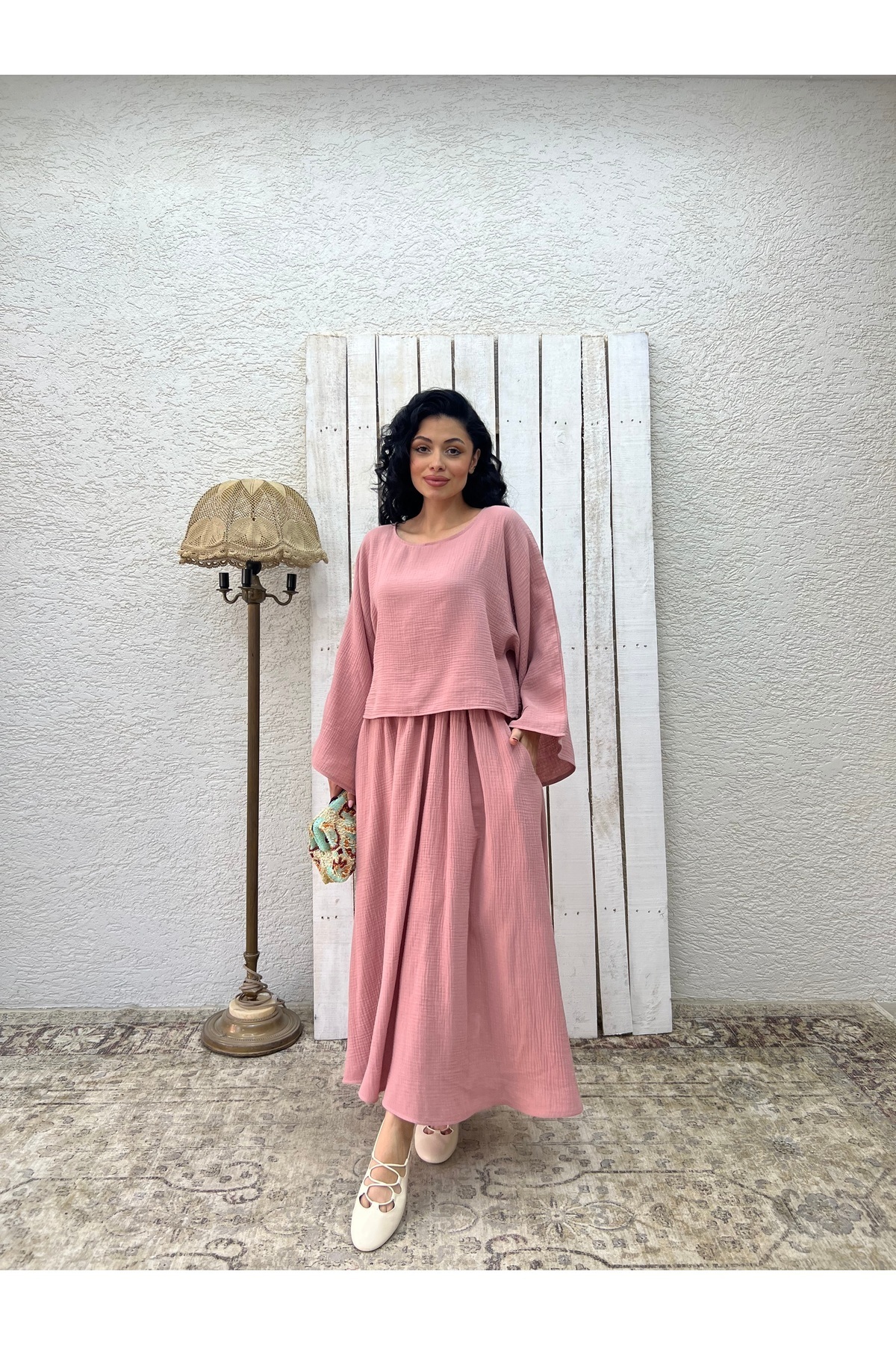Pudra Müslin Salaş Bluz Ve Kloş Etek Takımı (2'Lİ TAKIM) Pudra Müslin Salaş Bluz Ve Kloş Etek Takımı (2'Lİ TAKIM) KCGM13335 L/XL