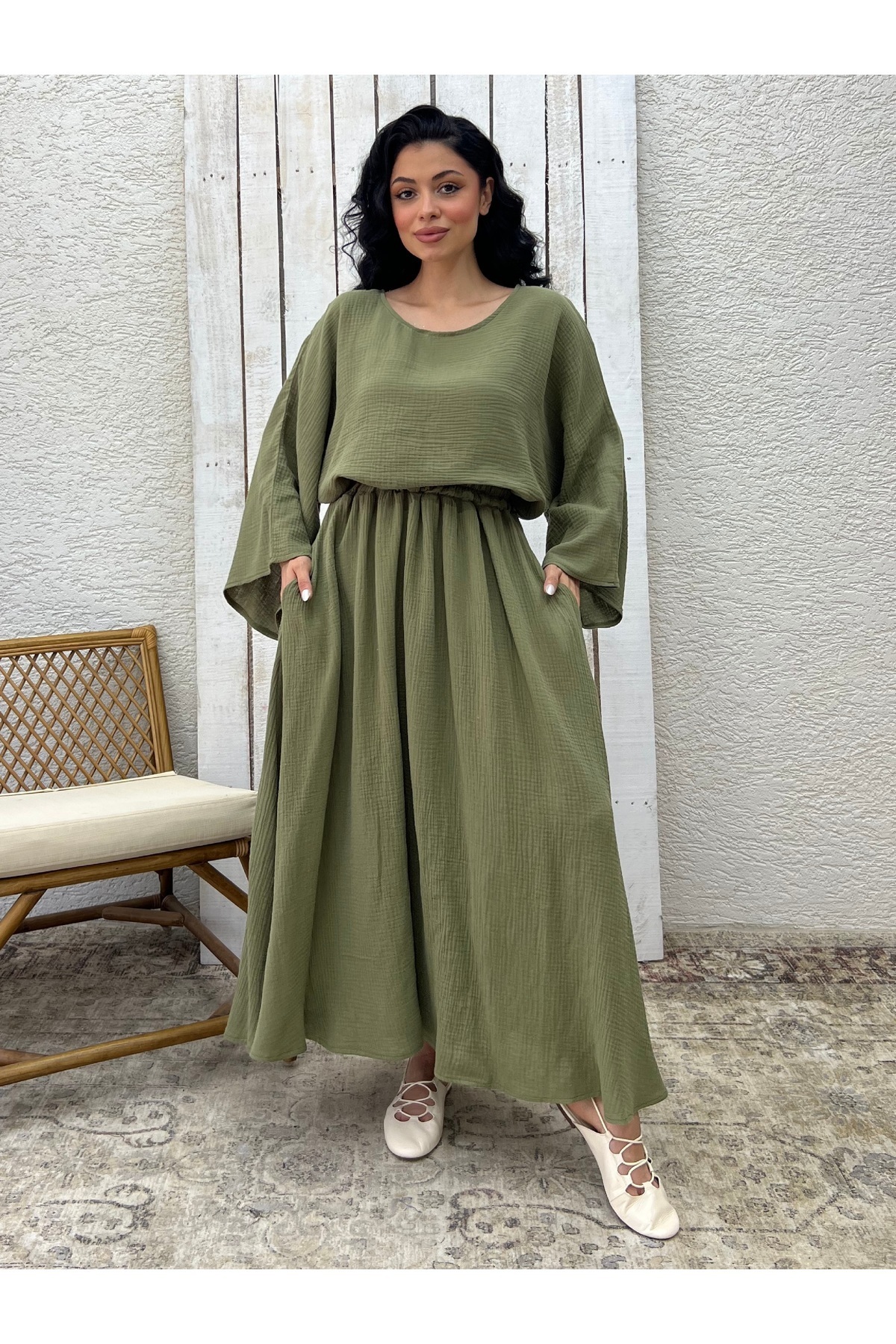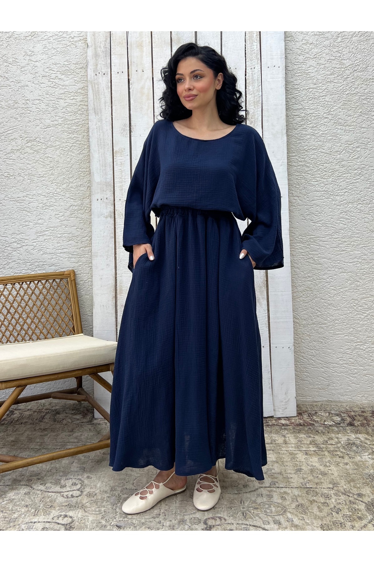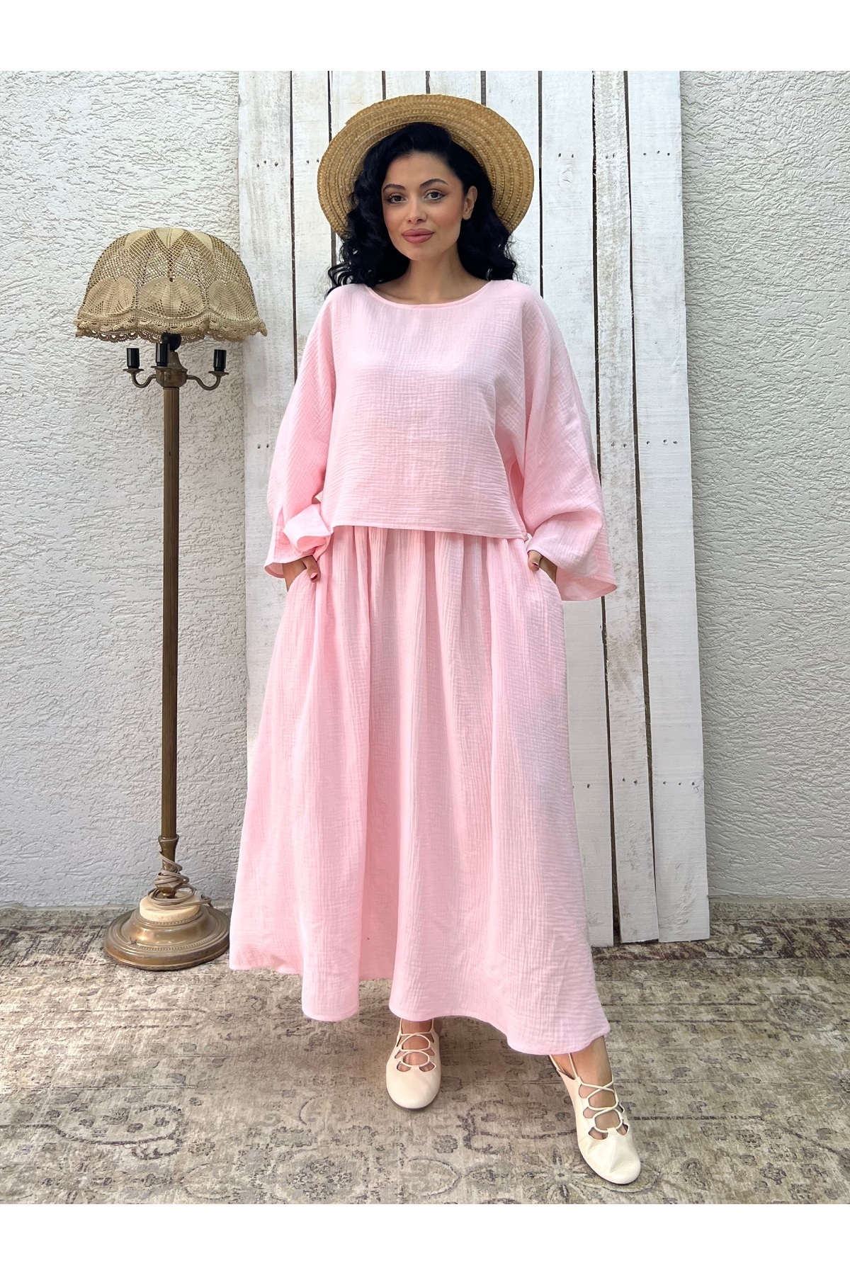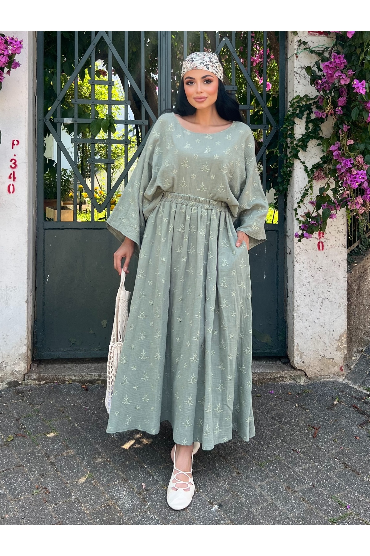 Krem Müslin Salaş Bluz Ve Kloş Etek Takımı (2'Lİ TAKIM) Krem Müslin Salaş Bluz Ve Kloş Etek Takımı (2'Lİ TAKIM) KCGM13335 L/XL