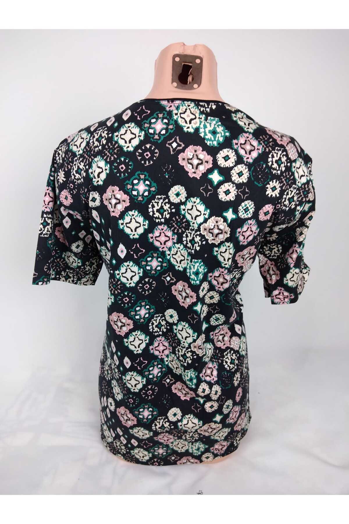Kadın Siyah Yeşil Bisiklet Yaka Kısa Kollu Desenli Yırtmaçlı Dokuma Viskon Anne Penye Tişört Kadın Siyah Yeşil Bisiklet Yaka Kısa Kollu Desenli Yırtmaçlı Dokuma Viskon Anne Penye Tişört RLYFLZ-147263 2XL
