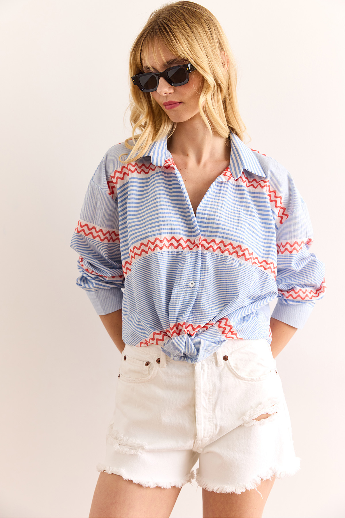 Kadın Mavi Beyaz Altı Düğümlü Salaş Gömlek GML-19001349 Kadın Mavi Beyaz Altı Düğümlü Salaş Gömlek GML-19001349 XL