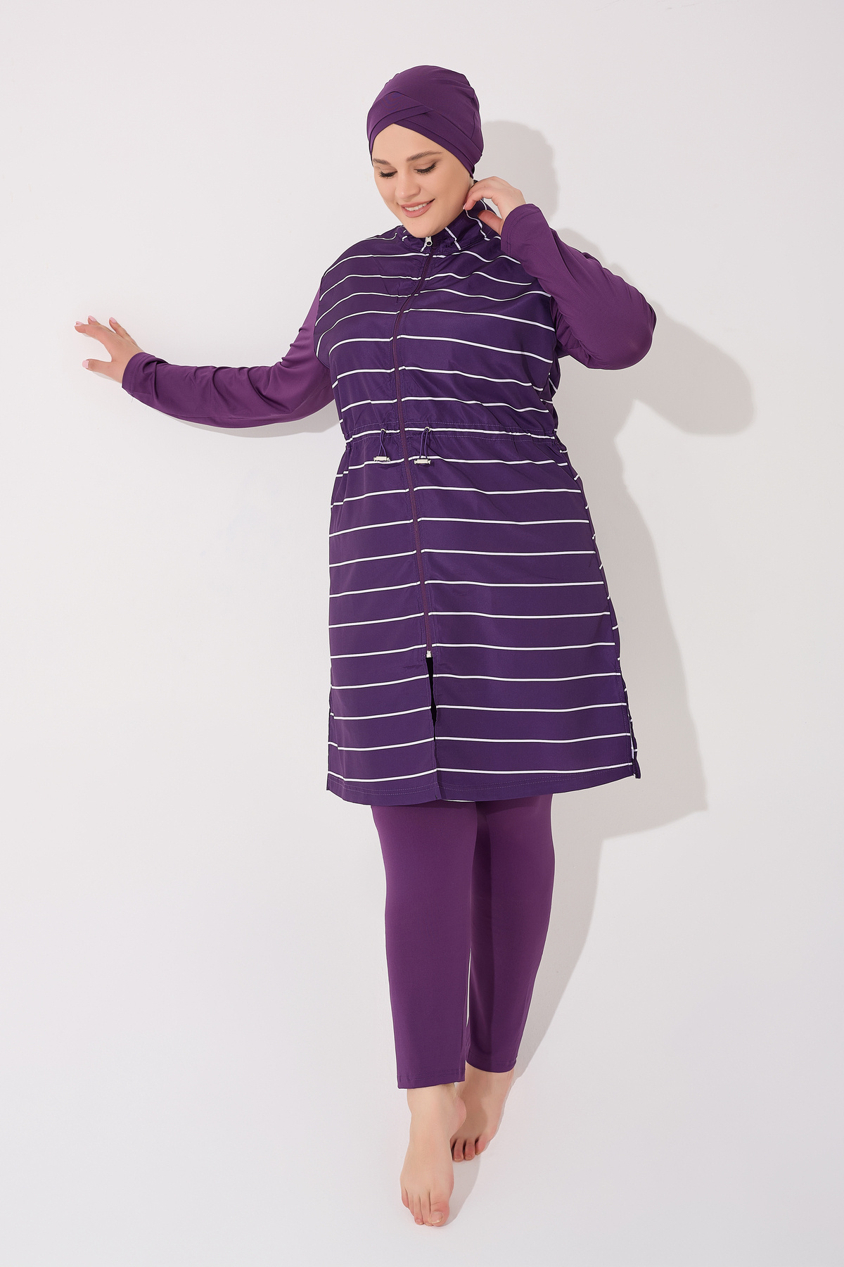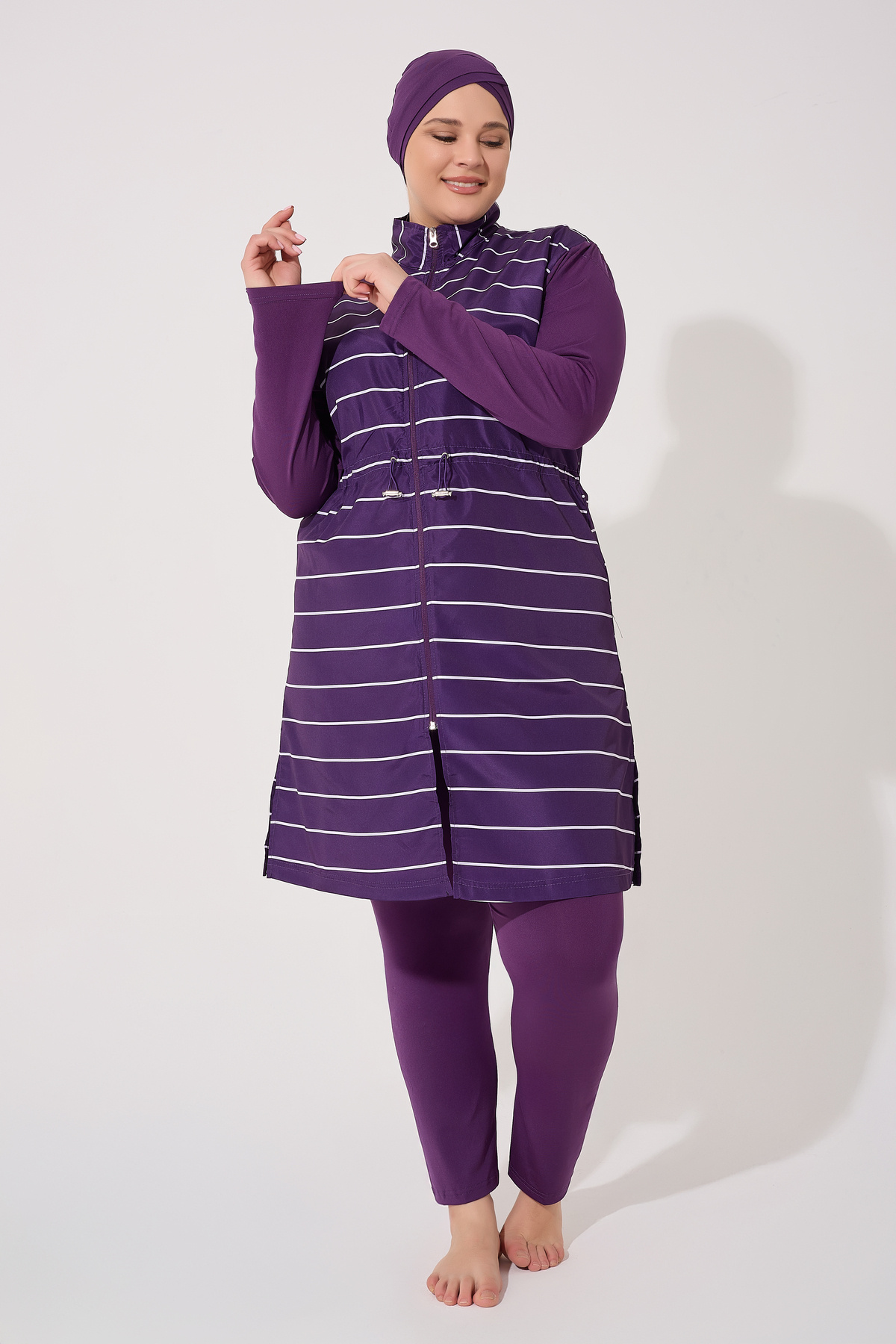 Büyük Beden Kadın Çizgili Tesettür Mayo 3 Parça Kadın Tesettür Mayo Büyük Beden Kadın Çizgili Tesettür Mayo 3 Parça Kadın Tesettür Mayo büyükbeden-99000 6XL