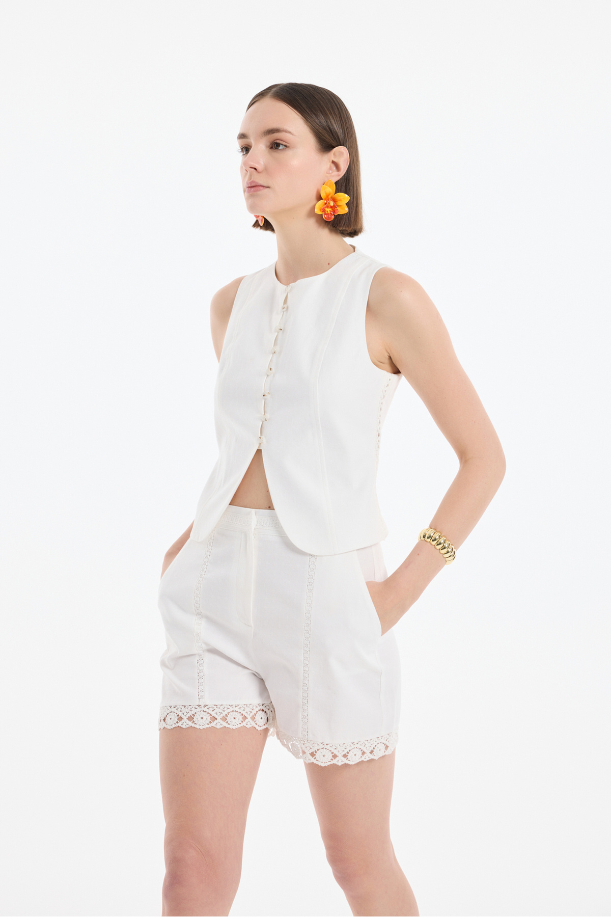 Dantel Şeritli Mini Şort Ekru Dantel Şeritli Mini Şort Ekru 25YSRT00373 L