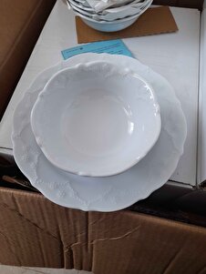 PORSELEN QUEEN 24 PARÇA 6 KİŞİLİK YEMEK TAKIMI ( PASTA TABAĞI BÜYÜK) PORSELEN QUEEN 24 PARÇA 6 KİŞİLİK YEMEK TAKIMI ( PASTA TABAĞI BÜYÜK) QUE01 تک سایز