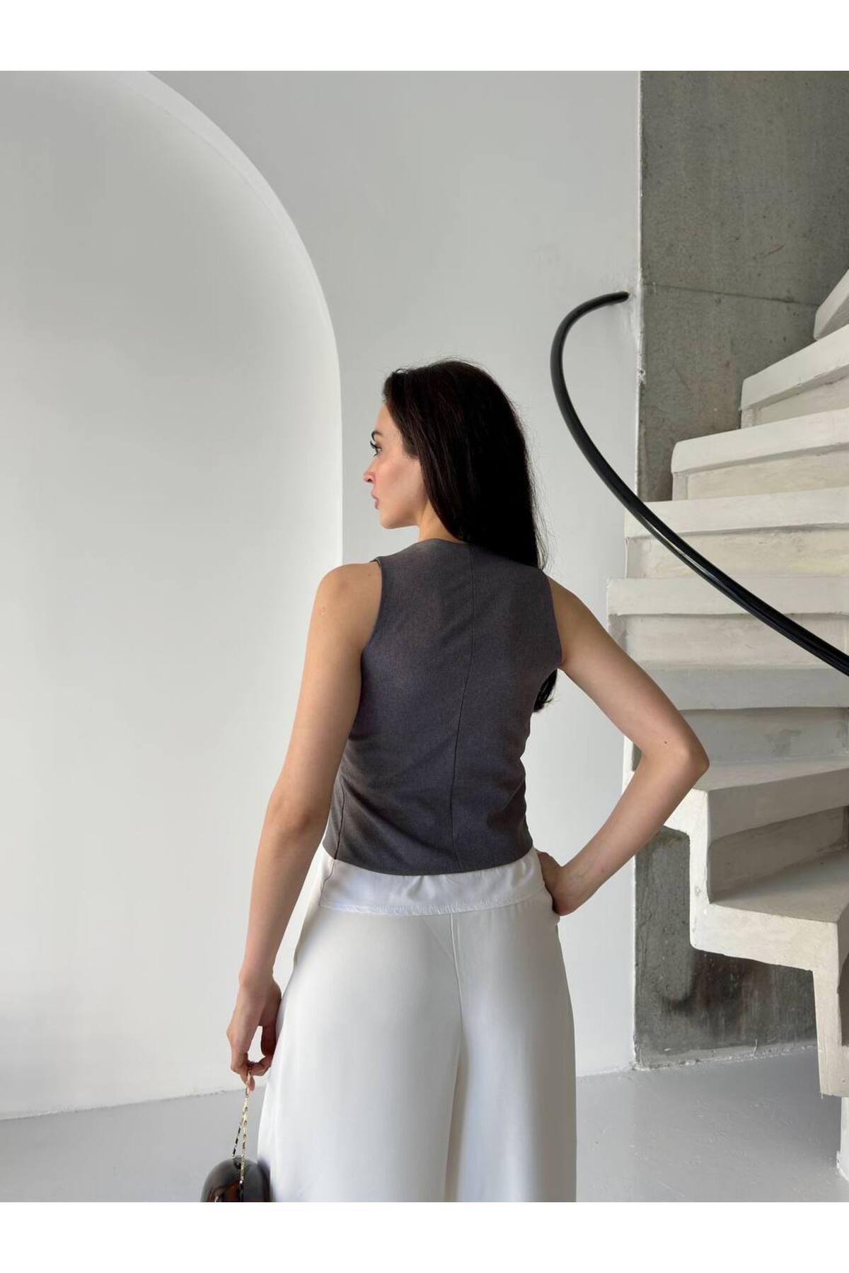 Kadın Gömlek Detaylı Düğmeli Gri Yelek Kadın Gömlek Detaylı Düğmeli Gri Yelek 2605 L