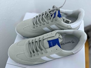 Unisex Gri Beyaz Termo Taban Çift Şeritli Bağcıklı Spor Ayakkabı Unisex Gri Beyaz Termo Taban Çift Şeritli Bağcıklı Spor Ayakkabı TBA2947 44
