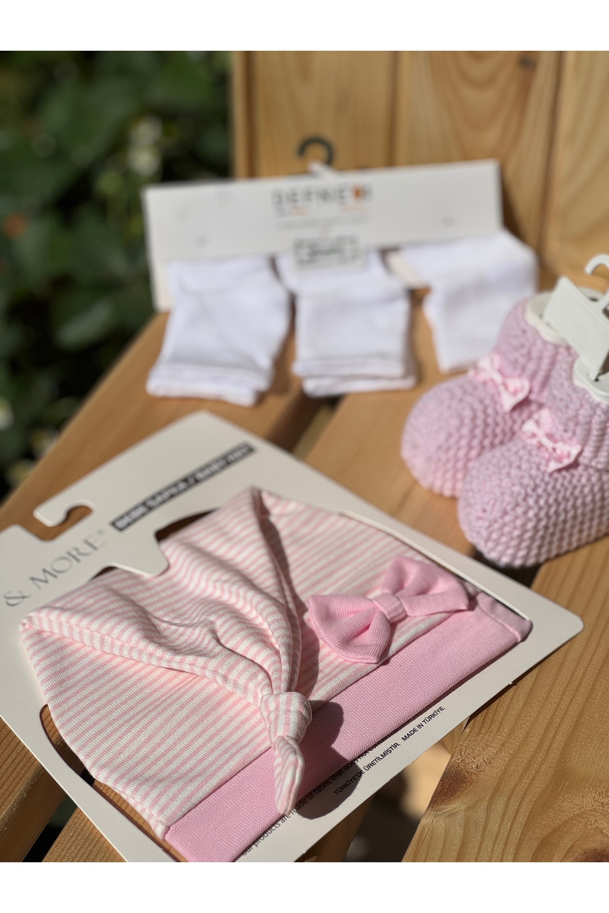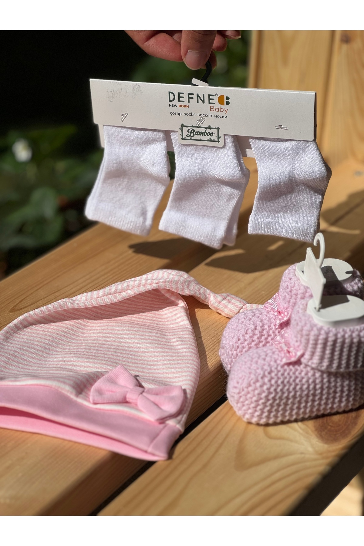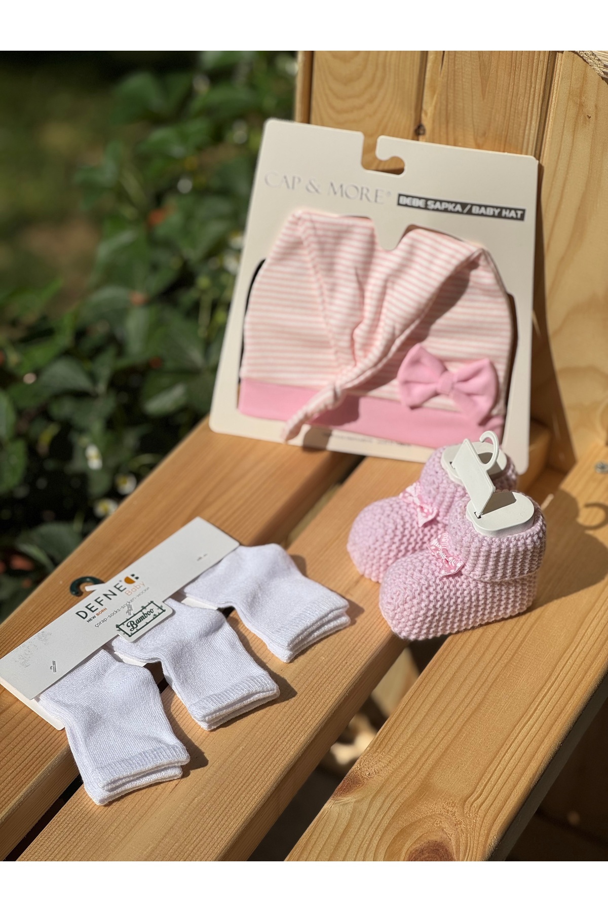 Bebek Pembe Fiyonk Patik& Penye Şapka& 3lü Bambu Çorap Set Yenidoğan Hediyelik Bebek Pembe Fiyonk Patik& Penye Şapka& 3lü Bambu Çorap Set Yenidoğan Hediyelik PSET777 0-3 AY