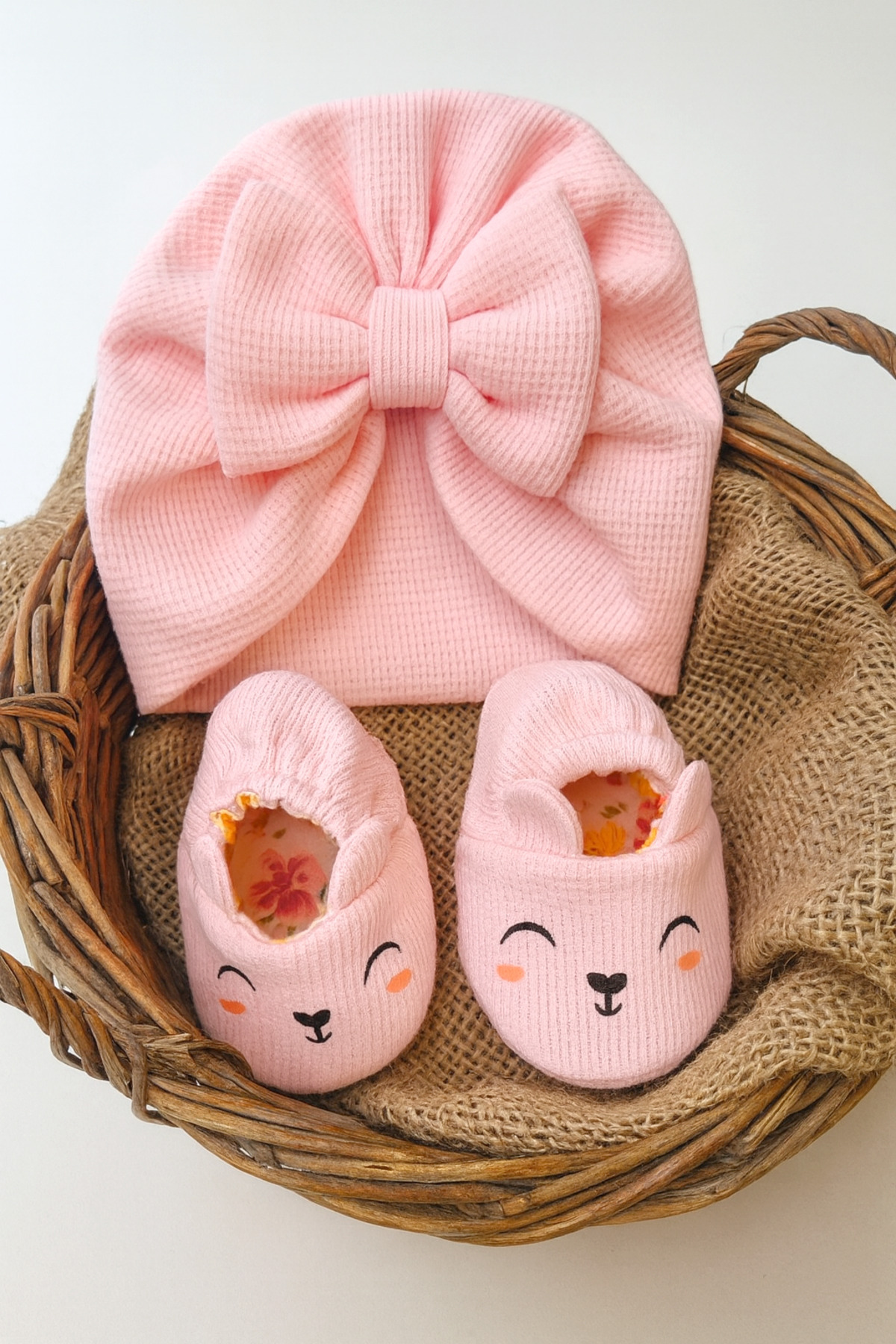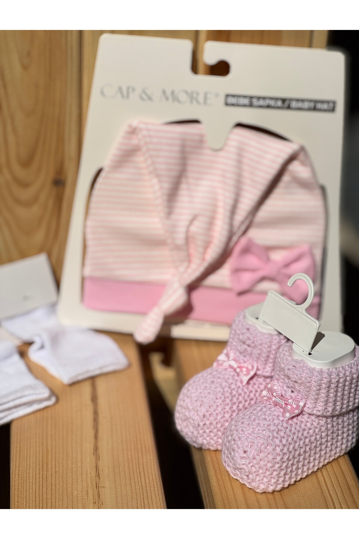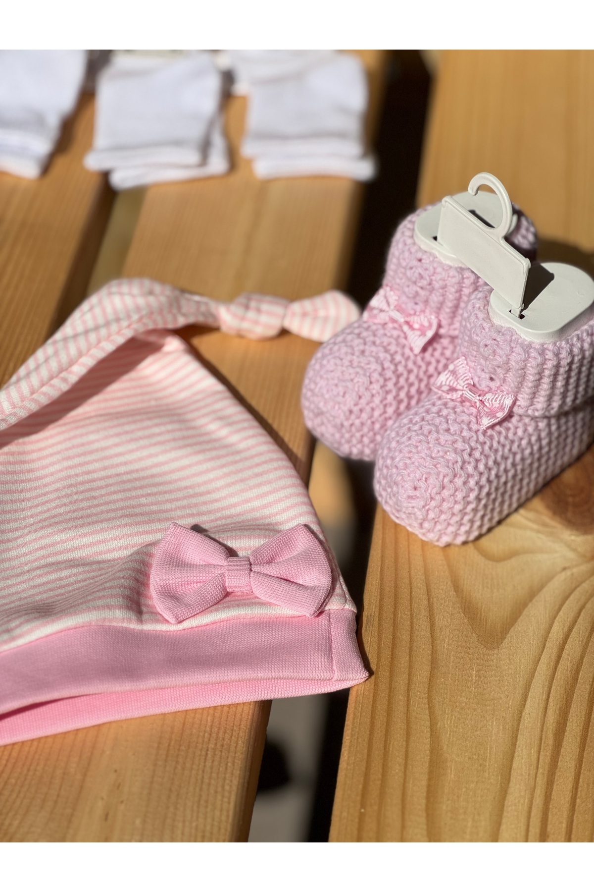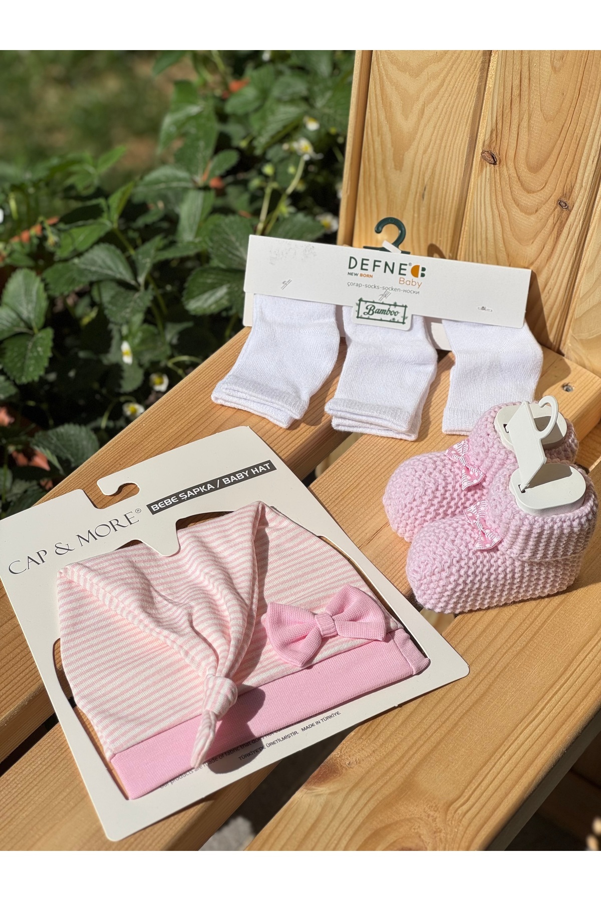 Bebek Pembe Fiyonk Patik& Penye Şapka& 3lü Bambu Çorap Set Yenidoğan Hediyelik Bebek Pembe Fiyonk Patik& Penye Şapka& 3lü Bambu Çorap Set Yenidoğan Hediyelik PSET777 0-3 AY